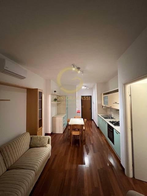 L'appartamento completamente arredato e dotato di elettrodomestici (escluso lavastoviglie). Riscaldamento centralizzato con contabilizzatori, condizionatori, parquet su tutta la superficie bagno escluso.