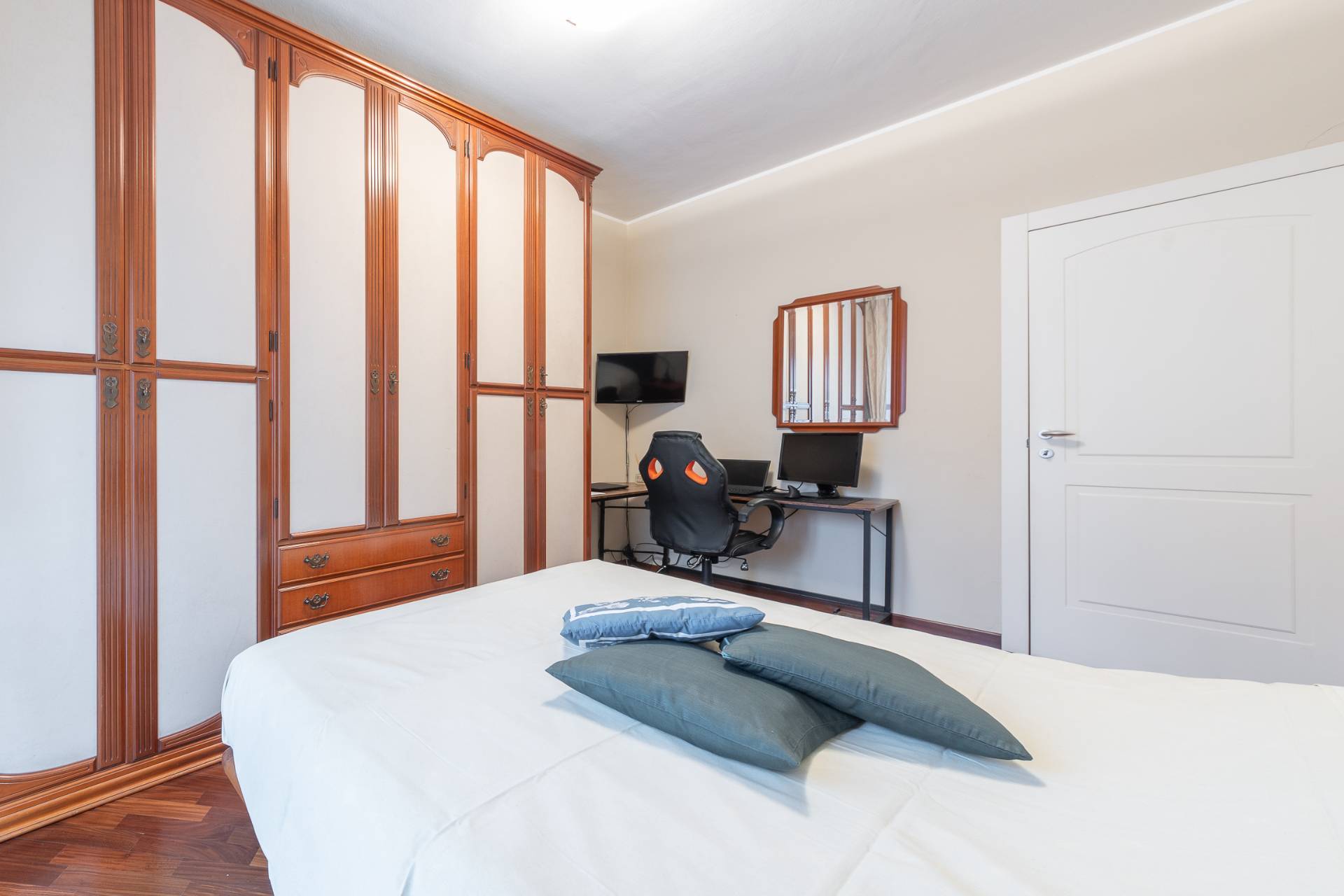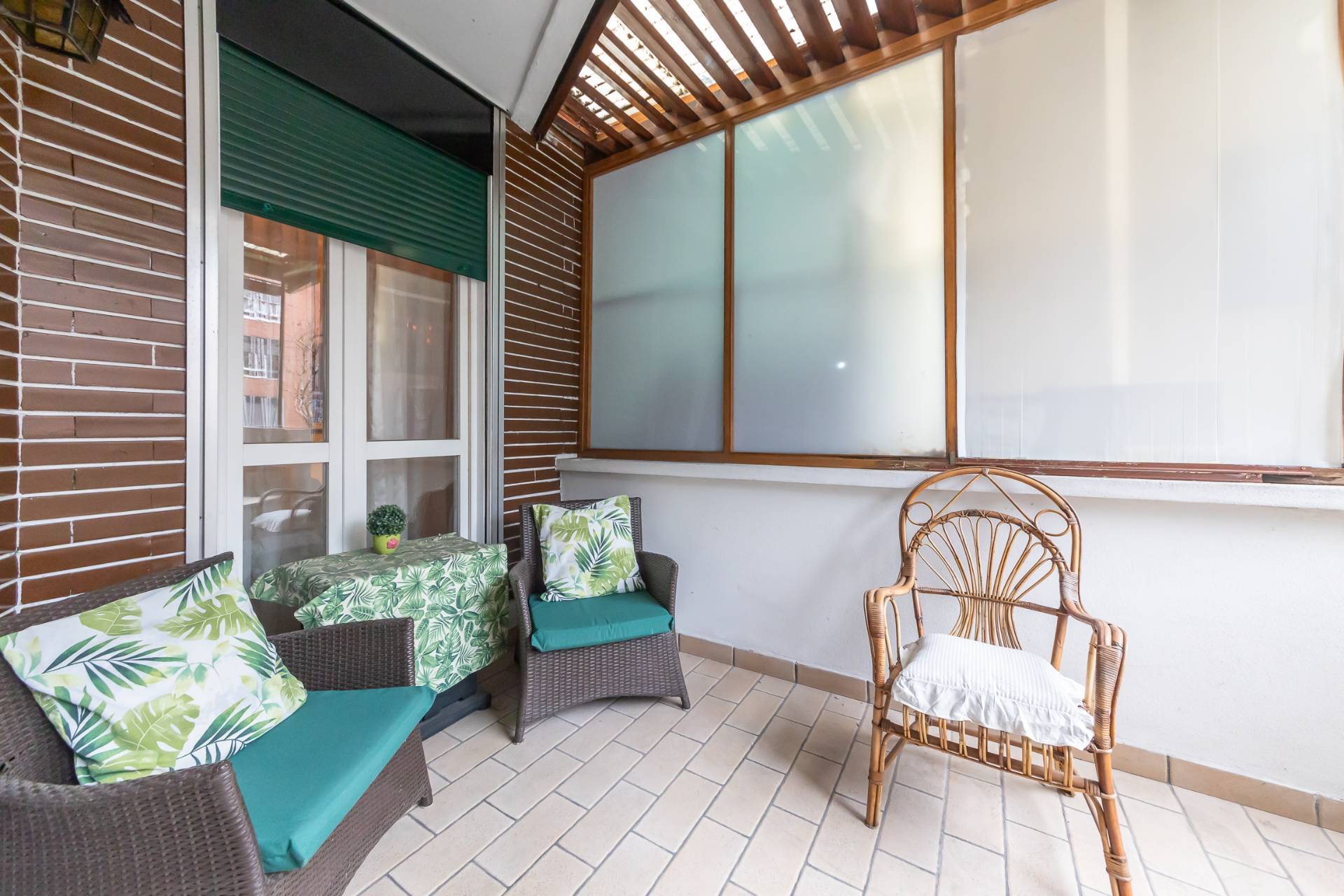 Labitazione si compone di una luminosa zona living con divano letto, una camera matrimoniale con balcone, una cucina abitabile separata dotata di terrazzo e completamente attrezzata con elettrodomestici.