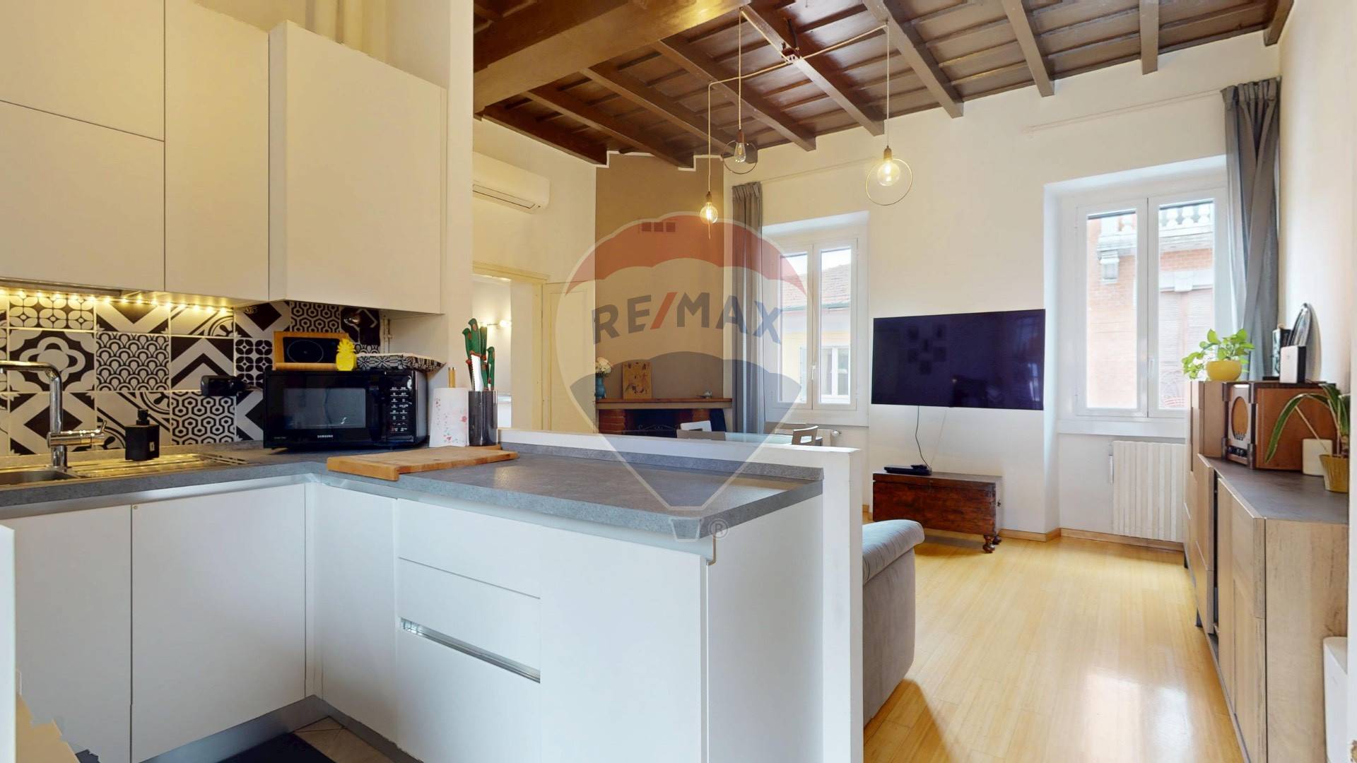 Limmobile si presenta in ottimo stato, completamente arredato e con soffitti alti impreziositi da travi a vista che donano carattere e luminosit agli ambienti.