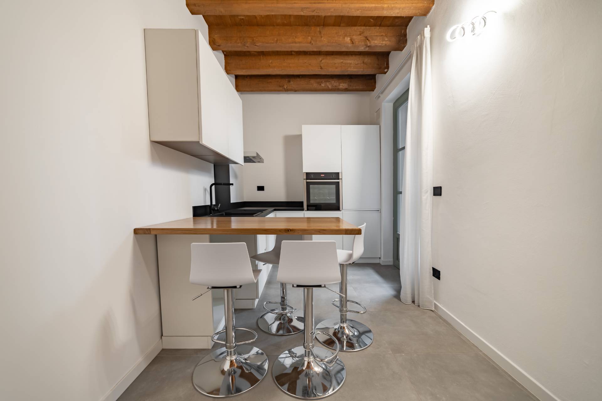 Lappartamento, finemente rifinito, composto da ingresso su soggiorno con cucina a vista, camera da letto matrimoniale, bagno moderno con sanitari sospesi, patio privato, perfetto per momenti di relax allaperto.