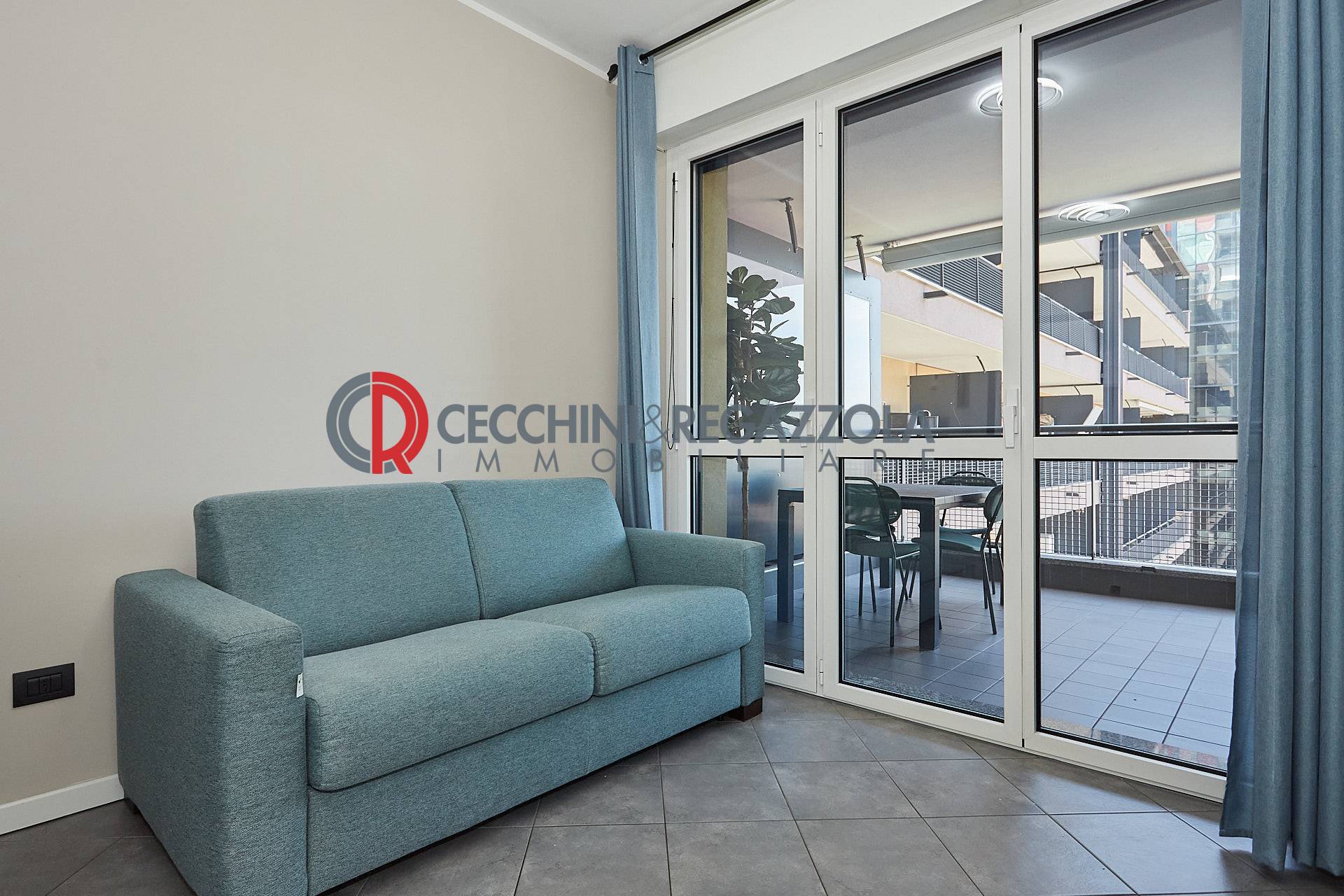 Si compone di soggiorno con cucina a vista, affacciati su un ampio e grazioso terrazzino abitabile dotato di tavolo, sedie e tenda da sole motorizzata.