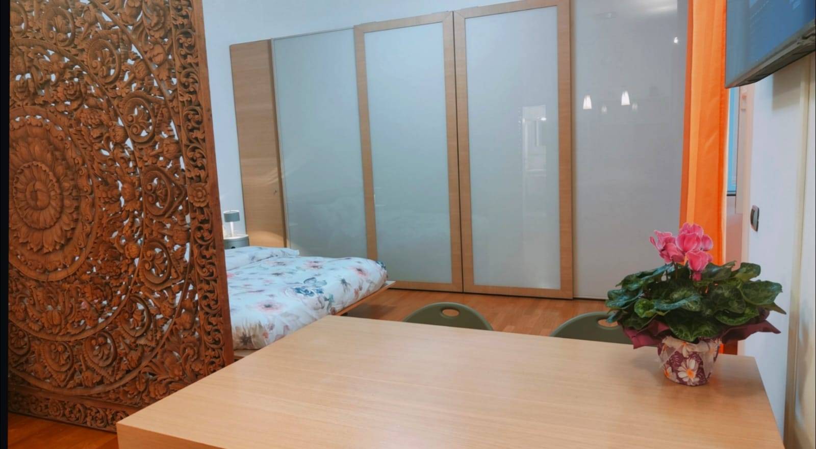 Un ambiente moderno e funzionale, recentemente ristrutturato, che unisce comfort e stile: composto da un ampio open space con area living e zona notte ben separate da elementi di design, un moderno cucinotto, antibagno e bagno finestrato con doccia Riscaldamento autonomo e climatizzatore completano le dotazioni.