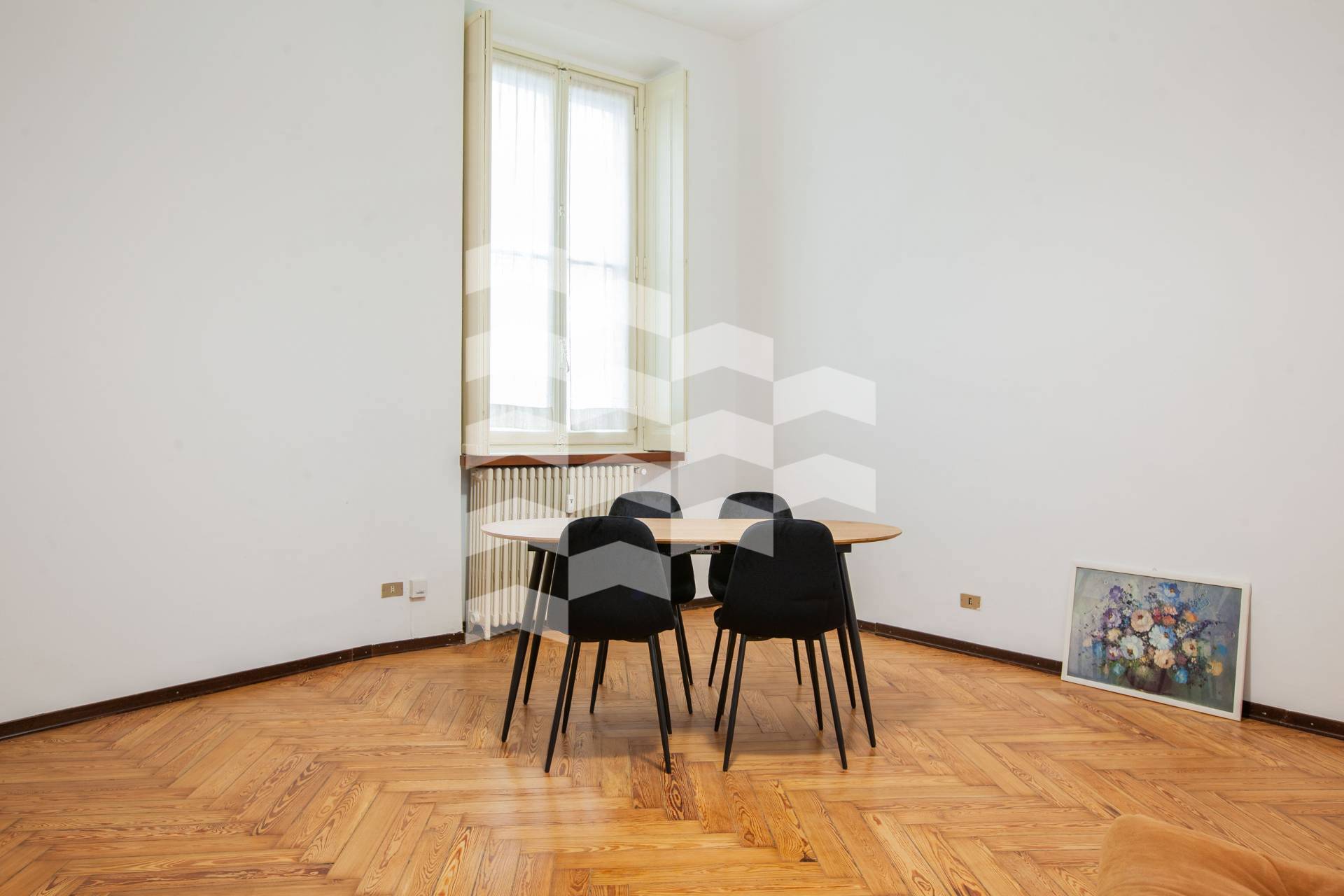 Cairoli - Piazza Castello, 11 DiRe Immobiliare propone in Piazza Castello 11, di fronte al Castello Sforzesco e a pochissimi passi dal Duomo, la locazione transitoria di un elegante appartamento parzialmente arredato, situato al primo piano in una corte interna di un prestigioso edificio storico.