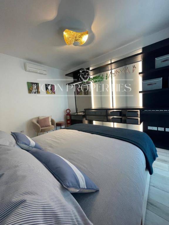 Lingresso si apre su una luminosa zona giorno con cucina a vista, seguita da una camera matrimoniale e un bagno finemente rifinito.