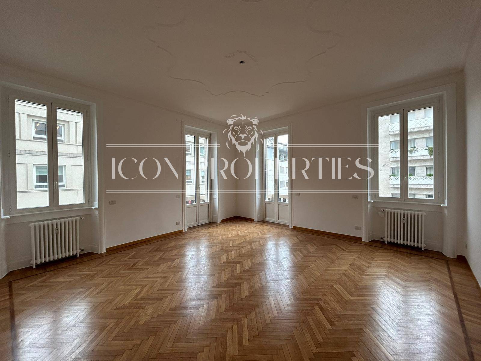 In Piazza Santa Maria Beltrade adiacente a Via Torino e a due passi da Piazza Duomo, proponiamo in LOCAZIONE splendido quadrilocale di circa 216 mq posto al quarto piano con ascensore di uno stabile d'epoca signorile.