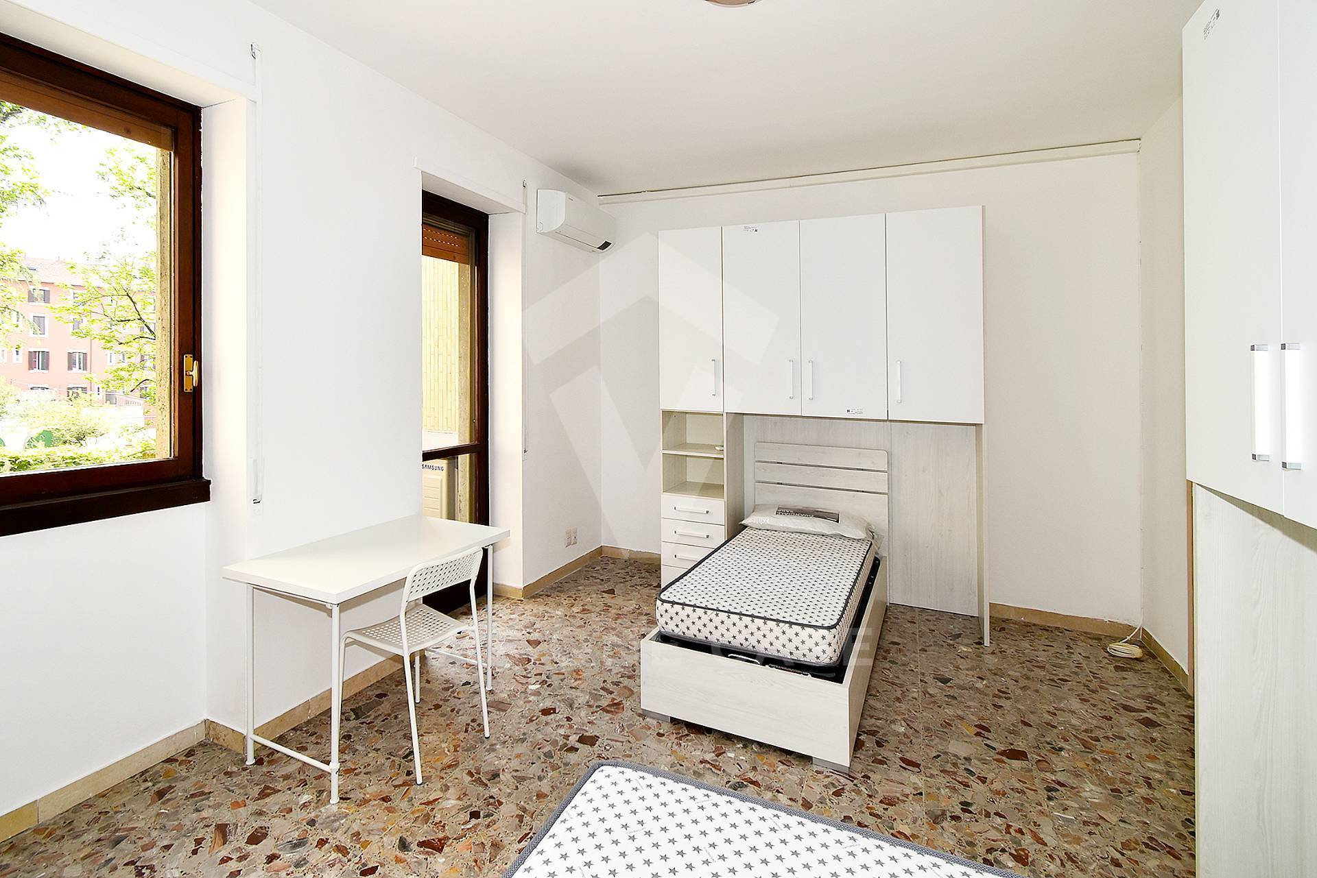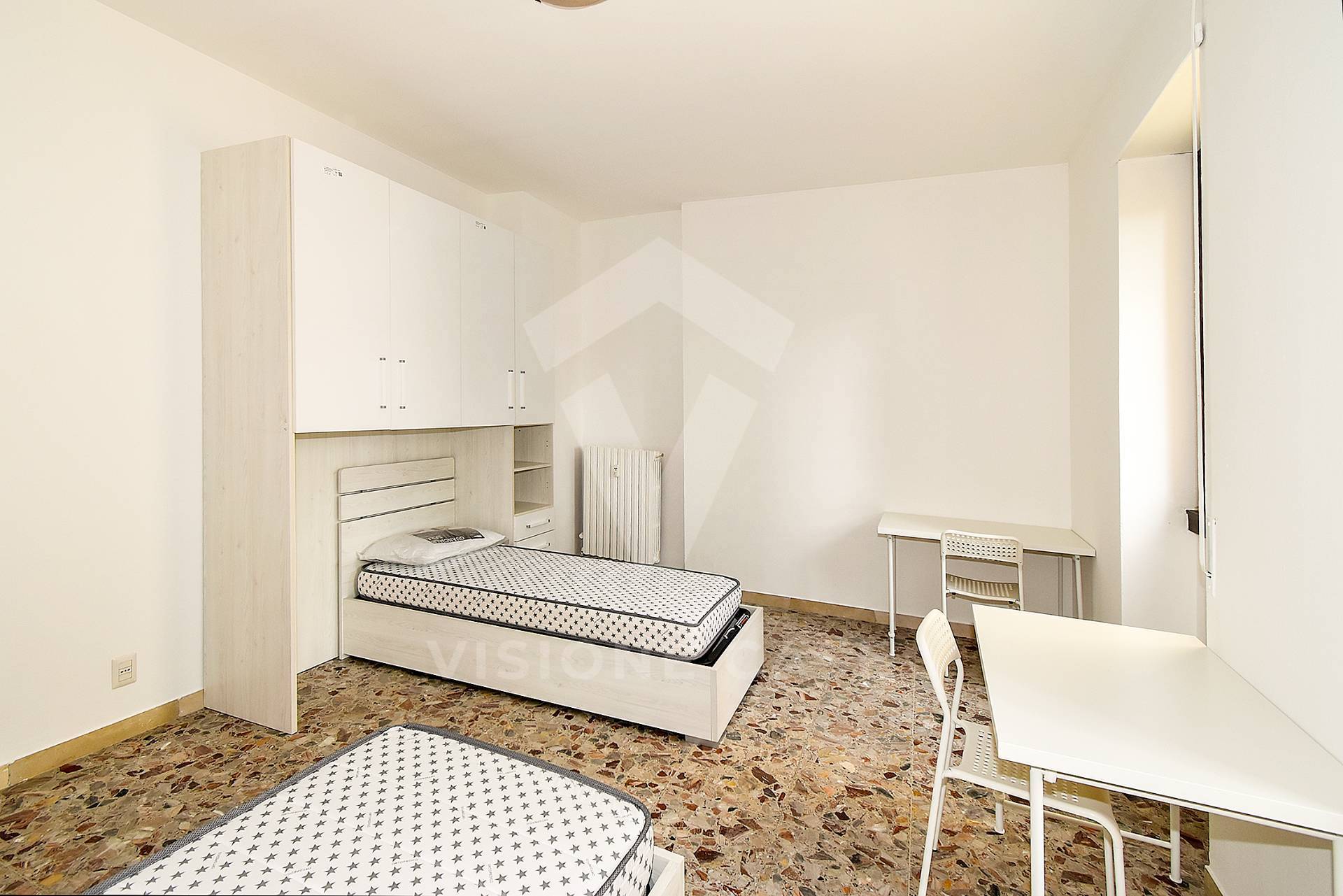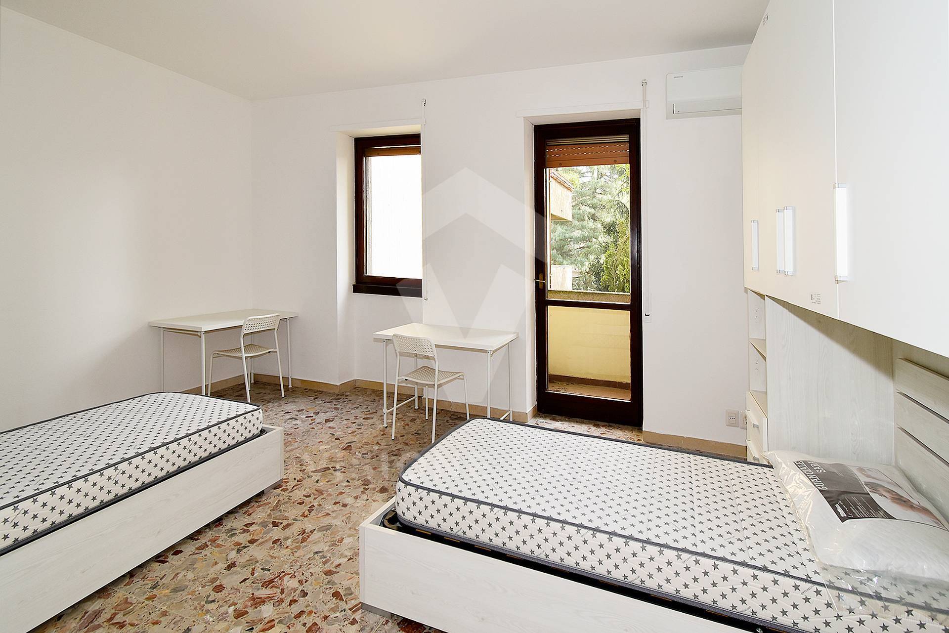 ARREDO CAMERE: Ogni stanza dispone di 2 letti singoli (per un totale di 4), armadi capienti e scrivanie per lo studio/lavoro.