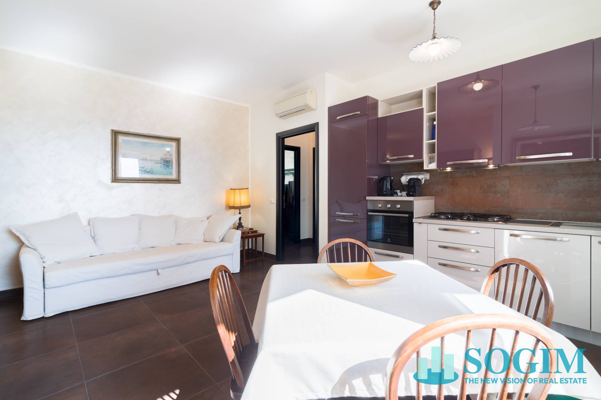 Soggiorno luminoso con cucina a vista attrezzata, ampia camera matrimoniale con terrazzino, bagno finestrato con doccia.