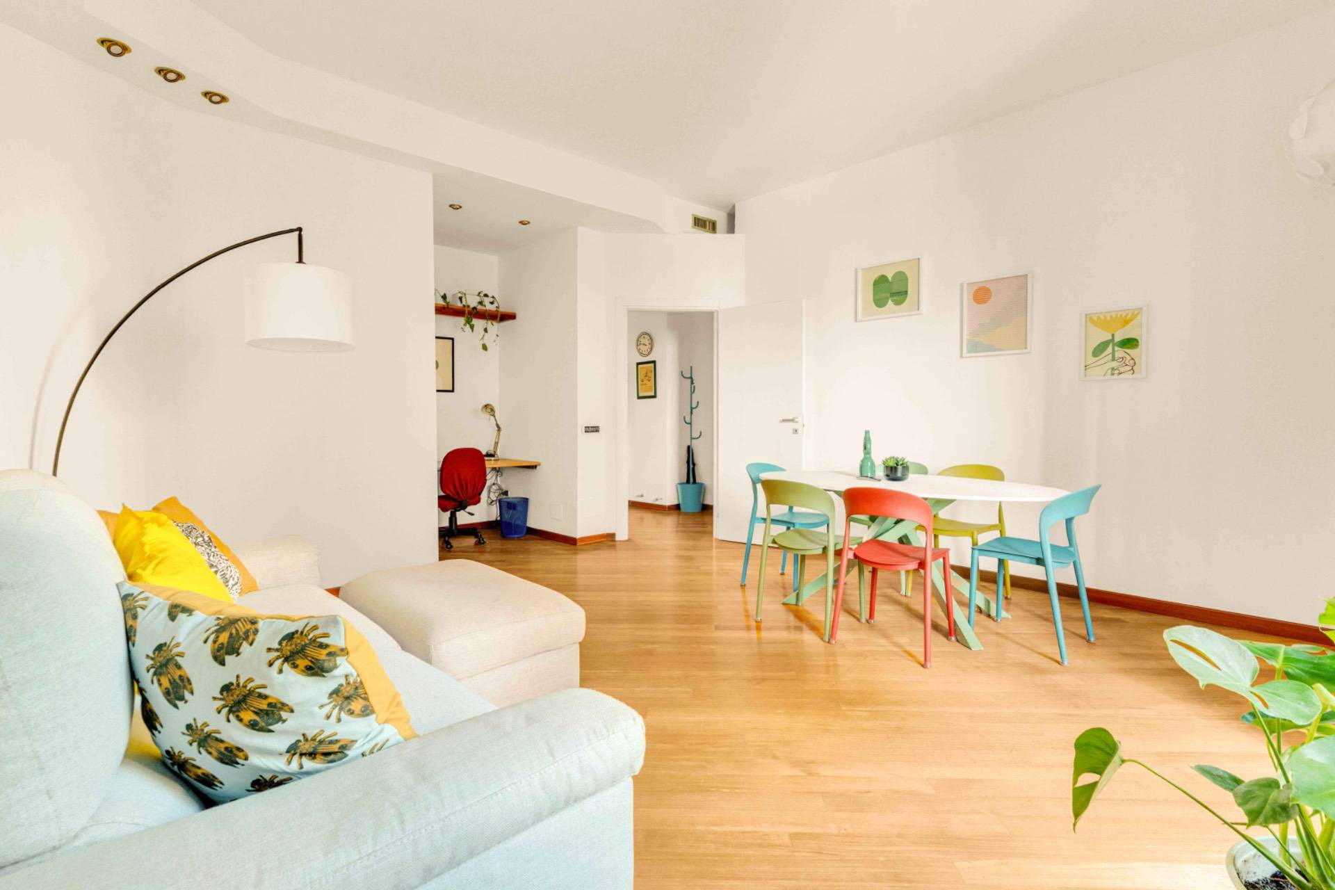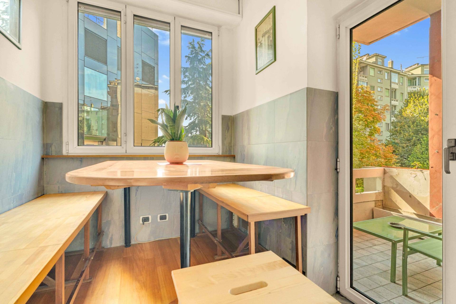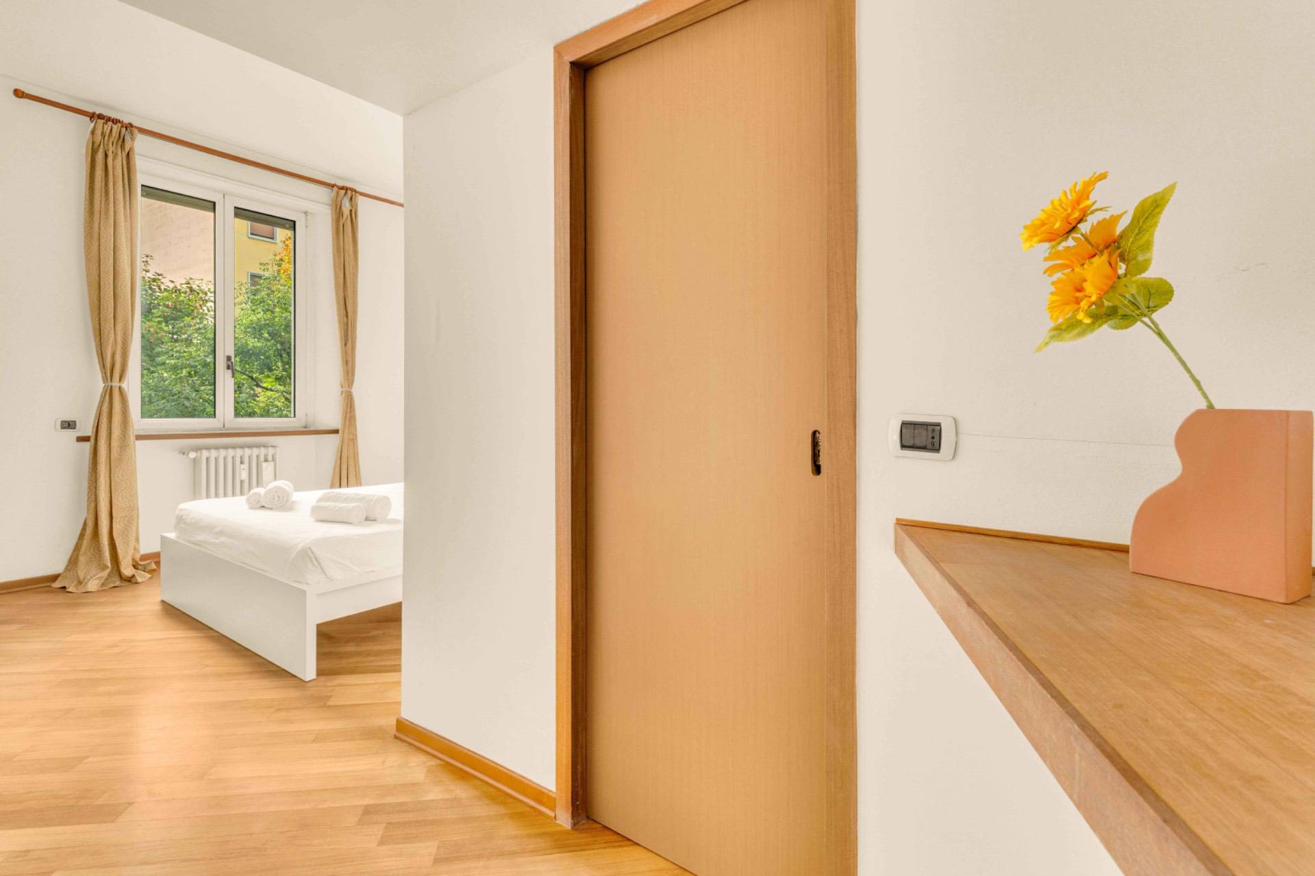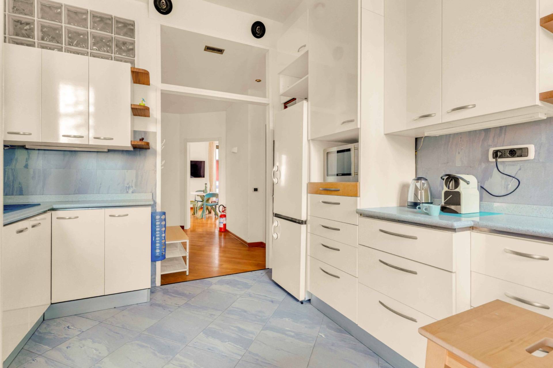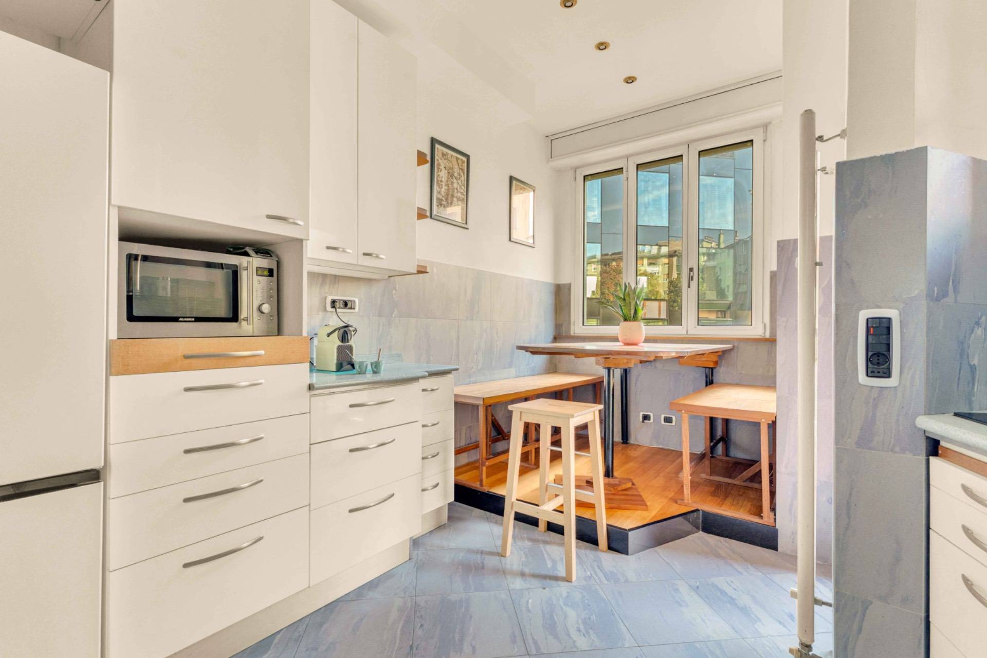 E' presente: aria condizionata in ogni ambiente infissi in doppio vetro in alluminio pavimentazione teak insonorizzato controsoffitto insonorizzato tapparelle elettriche riscaldamento centralizzato Grazie al piano alto e all'esposizione, lappartamento gode di una straordinaria luminosit e di un silenzio raro, garantendo il massimo comfort abitativo nel cuore della citt. Il condominio dispone di un enorme e grazioso giardino privato dove possibile posteggiare biciclette e moto/motorini.