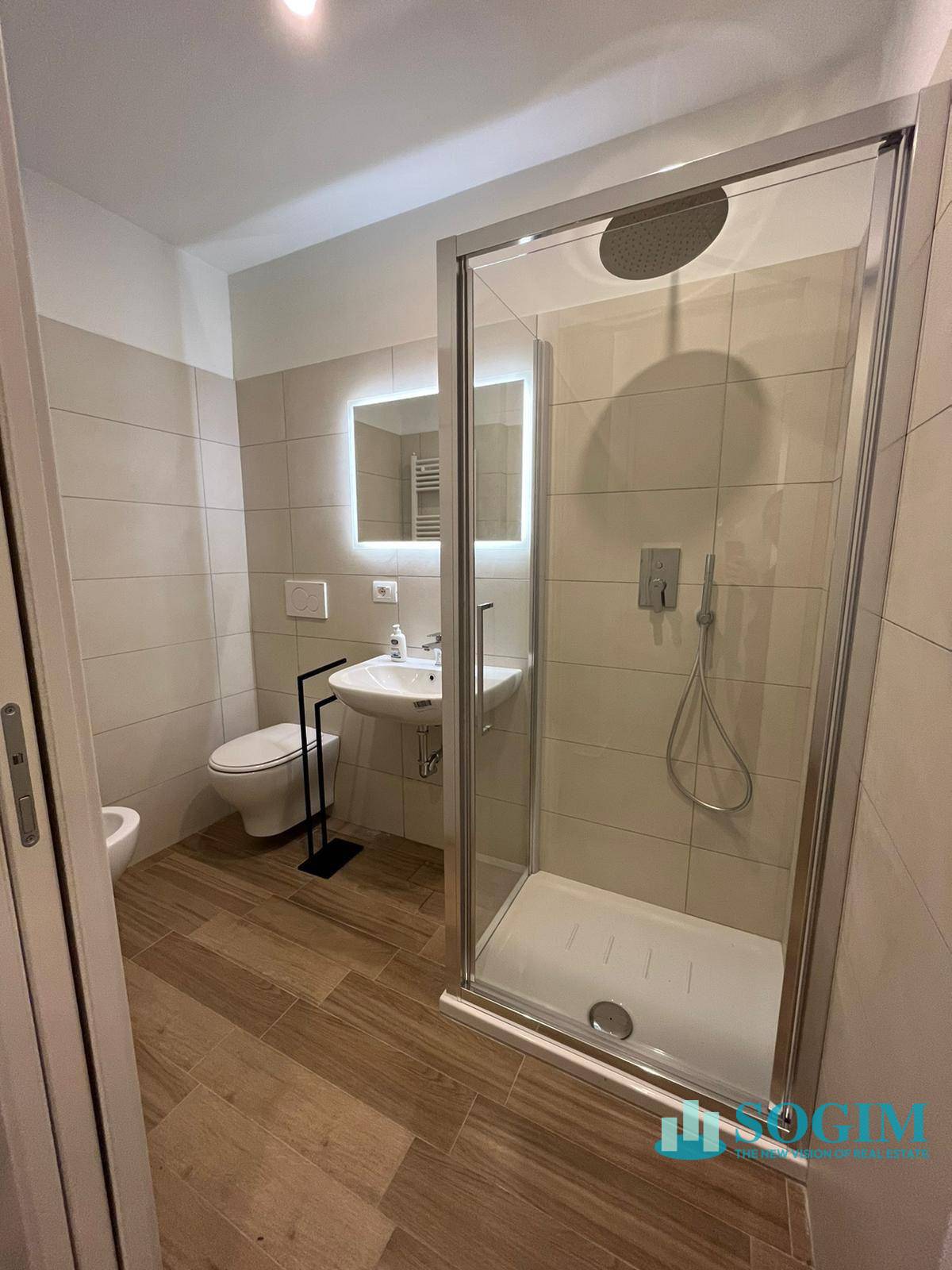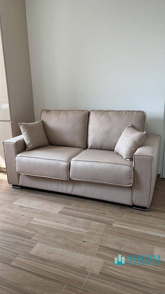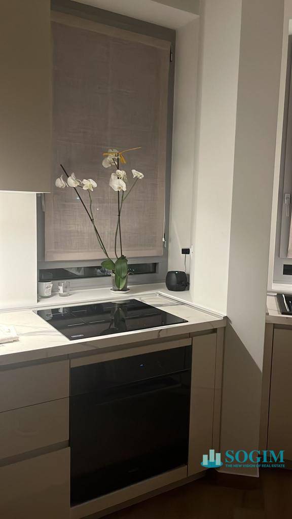 L'appartamento composto da: ingresso, soggiorno con cucina abitabile arredata con doppia finestra, piano induzione, lavastoviglie e lavatrice, disimpegno con ampia armadiatura su misura, camera matrimoniale con armadiatura a tutta altezza soffitto, bagno con doccia e areazione meccanica.