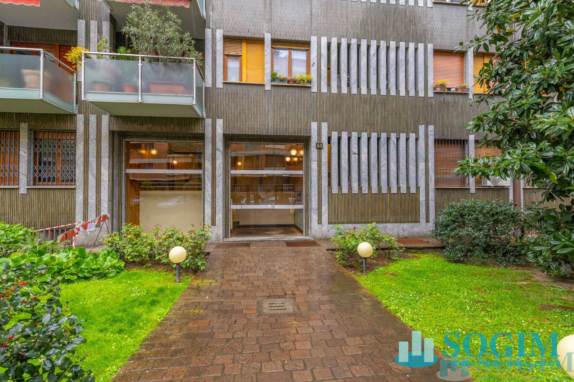 L'appartamento si trova al primo piano di sei in una palazzina di pregio con ascensore dotata di giardino condominiale ben curato e servizio di portineria giornaliera.