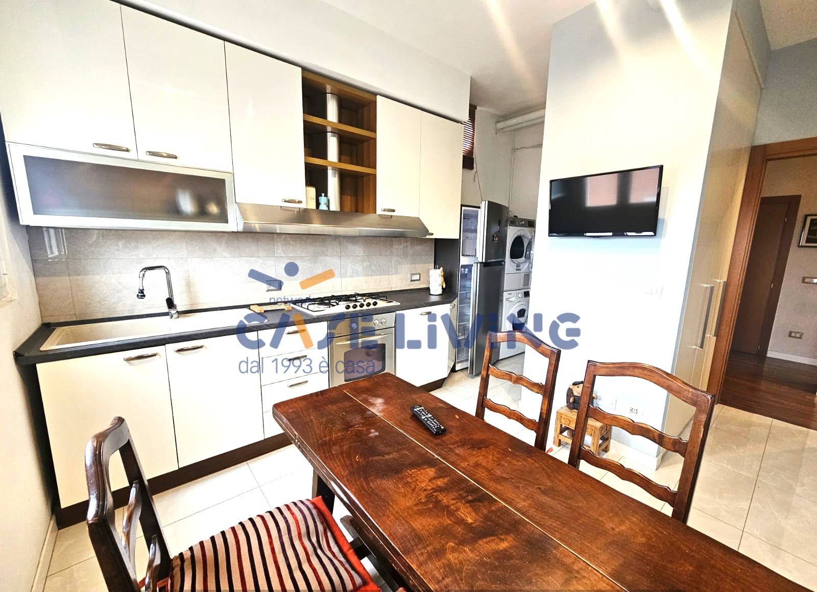 Si compone di ingresso, soggiorno con balcone, ampia cucina abitabile con angolo lavanderia fornita di lavatrice e lavasciuga, camera matrimoniale, bagno finestrato con doccia e ripostiglio.