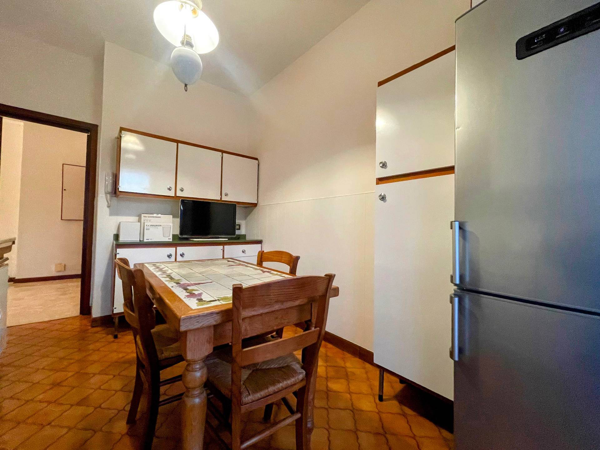 l'appartamento arredato e dotato di riscaldamento centralizzato, aria condizionata, di frigorifero, lavastoviglie, di lavatrice, di piani di cottura.