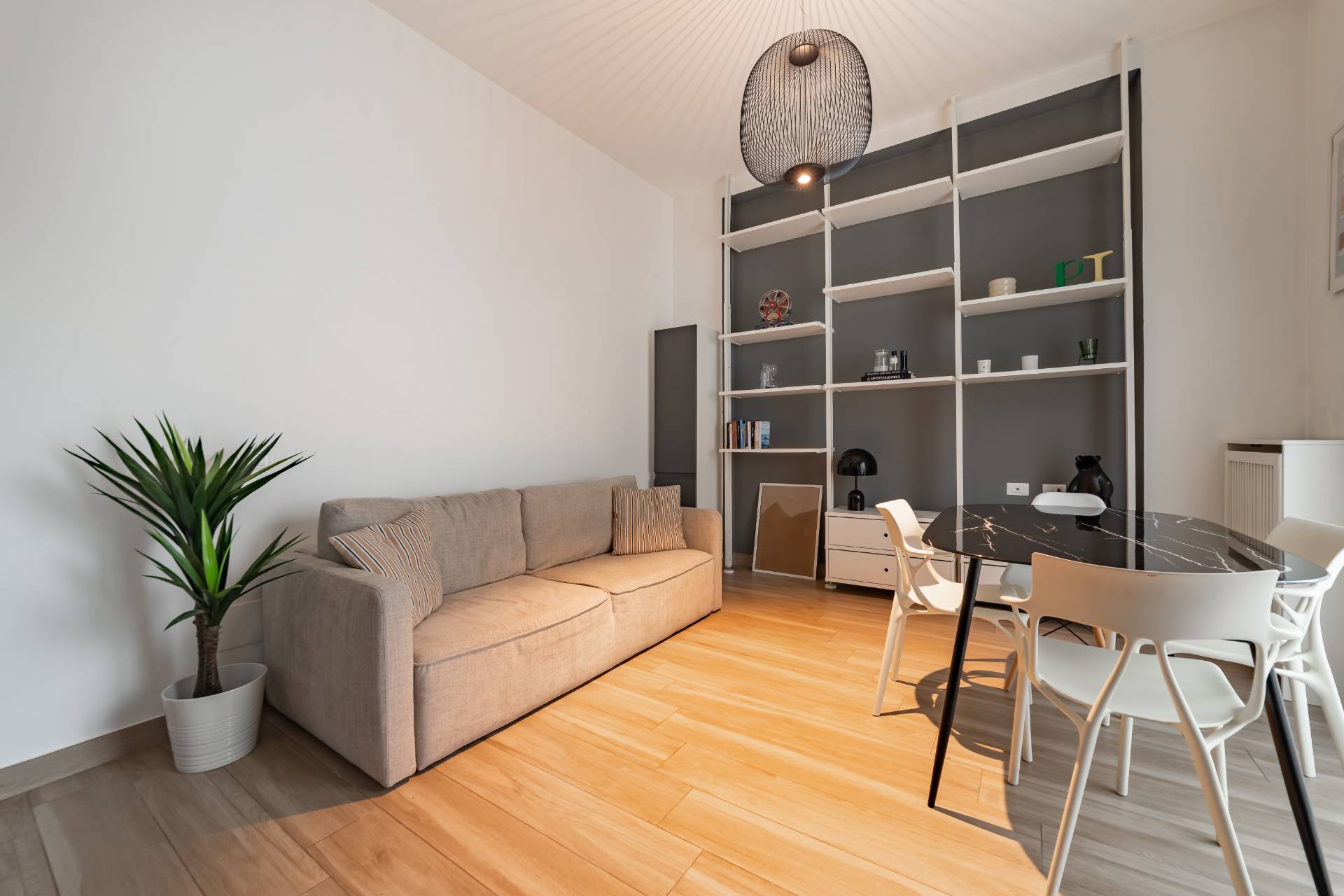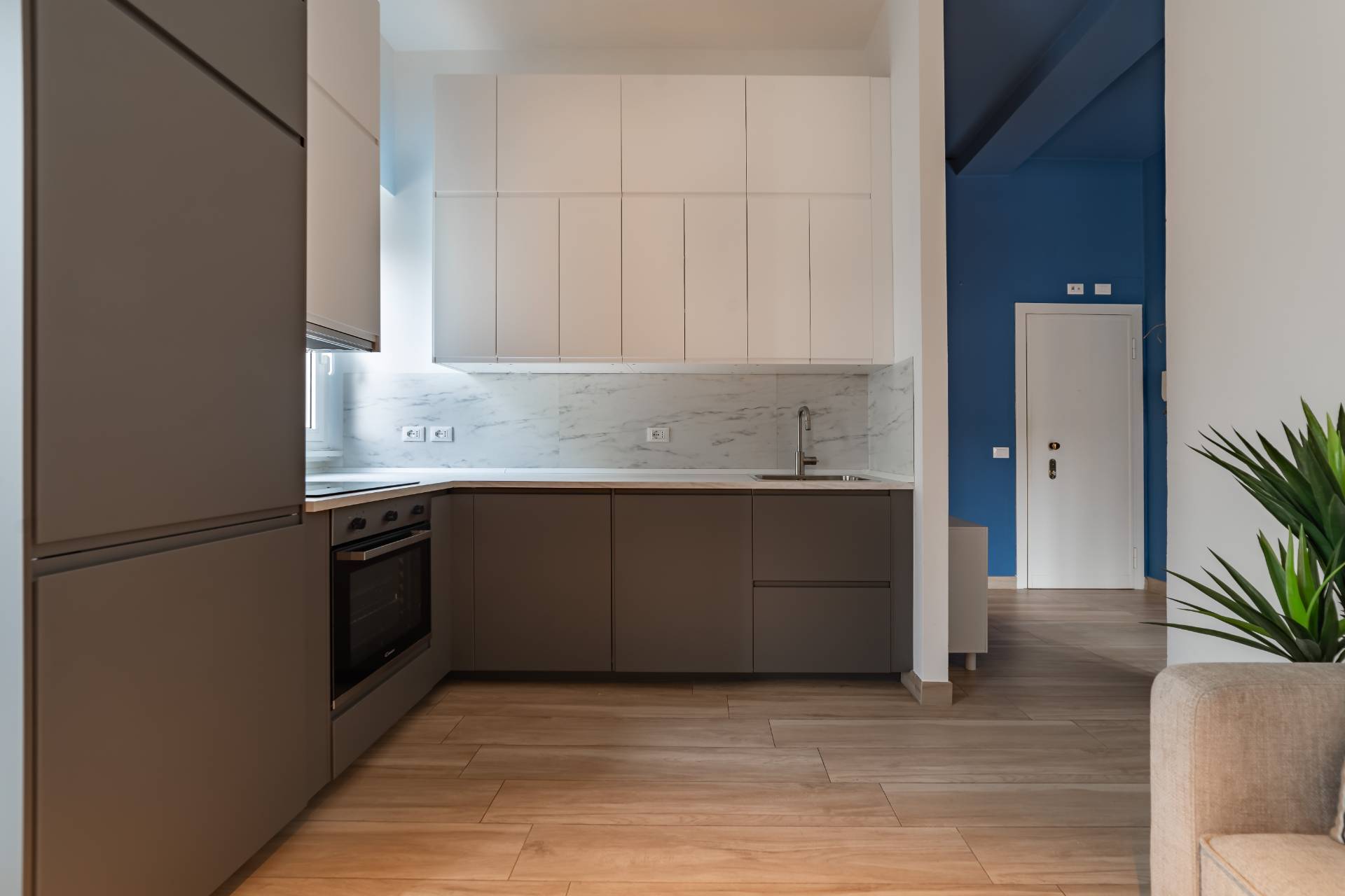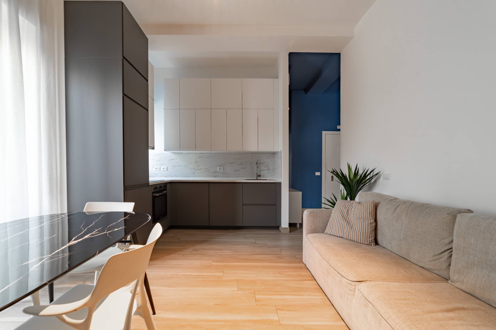 Lappartamento composto da ingresso, zona giorno con cucina a vista, camera da letto matrimoniale e bagno, ed stato recentemente ristrutturato con finiture moderne.