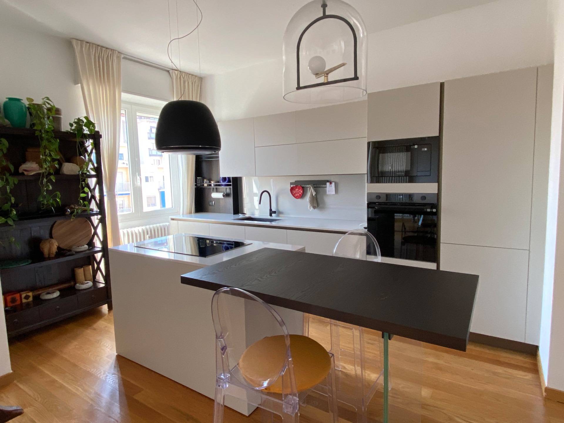 L'appartamento viene affittato completamente arredato, con una cucina a vista moderna e funzionale, perfetta per chi ama cucinare.