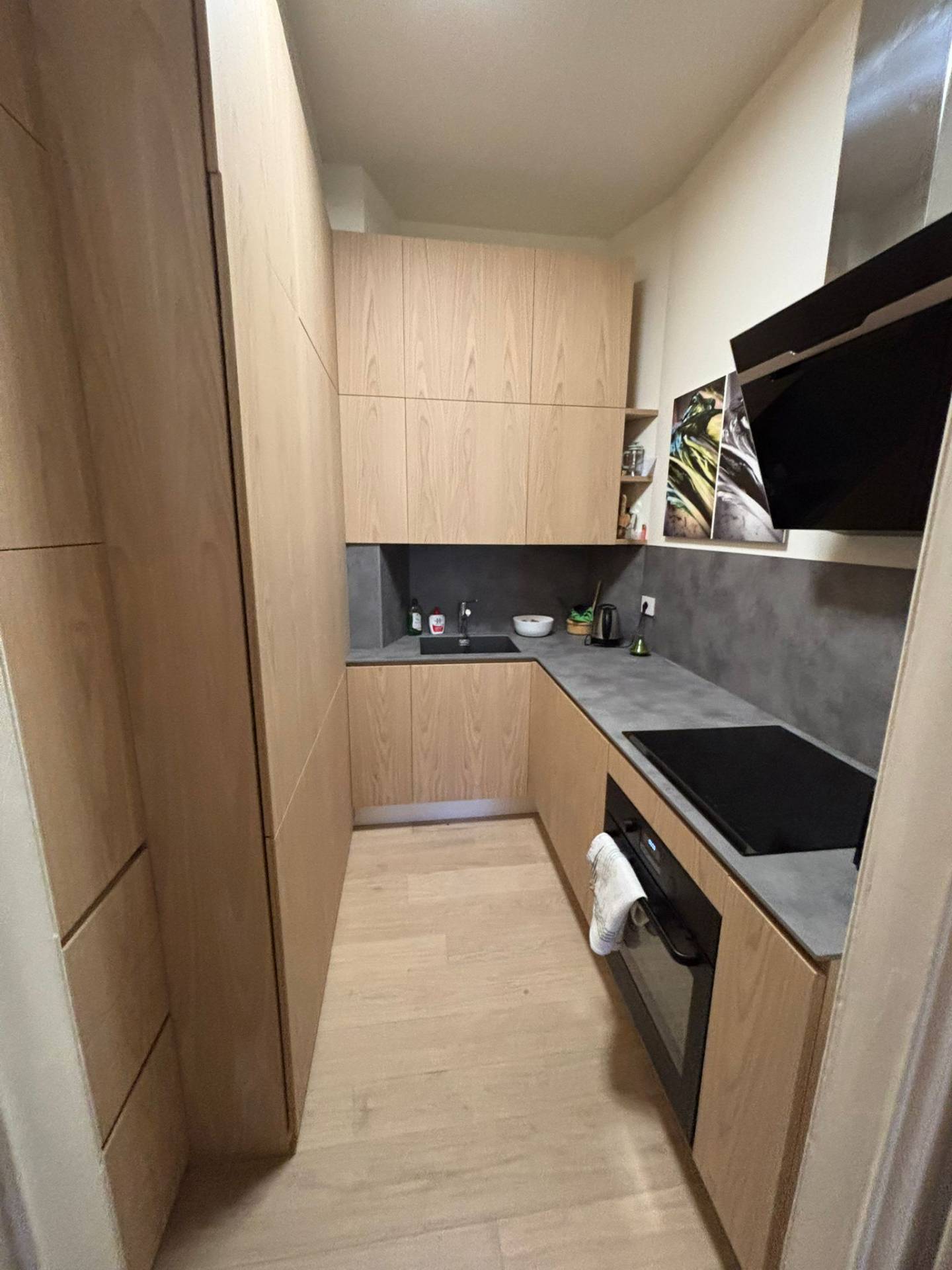 L'ampio ingresso conduce alla zona giorno composta da un accogliente soggiorno arredato e una cucina attrezzata.