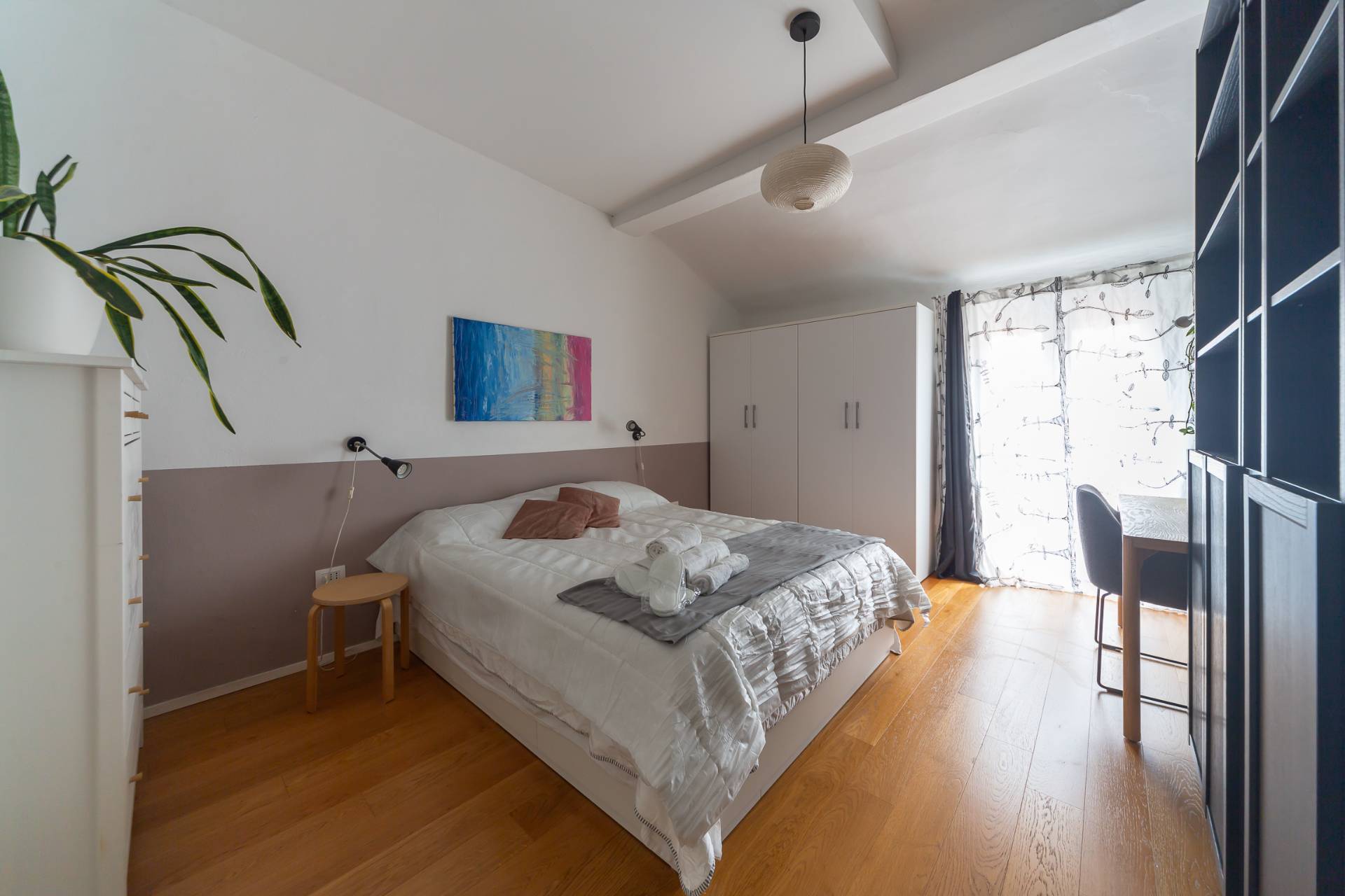 L'appartamento sito al 3 piano S.A., di un condominio familiare, luminoso grazie ad una doppia esposizione balconata / terrazzato e silenzioso grazie ai doppi vetri L Appartamento con parquet ,composto da una zona living/cucina open ,attrezzata di tutto (bollitore, macchina da caff, forno, microonde, utensili, ecc...) e divano letto matrimoniale Super accessoriaro con smart tv 32'' che vi permetter di vedere anche Netflix e Prime Video con il vostro account, riscaldamento, aria condizionata, Wi-Fi veloce per lo Smart-Working Dal living si accede ad un balcone/terrazzato con tavolino e sedie, dove poter degustare un aperitivo qualsivoglia in tutta pace. Zona notte ampia e luminosa balconata con letto matrimoniale, scrivania con sedia e vari armadi e cassettiere dove riporre i vostri indumenti.