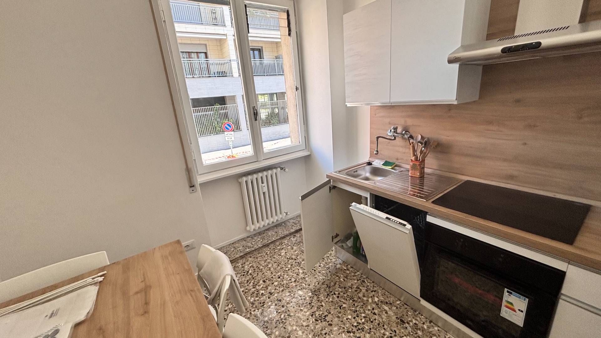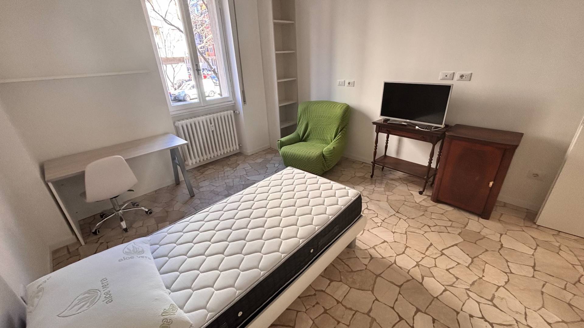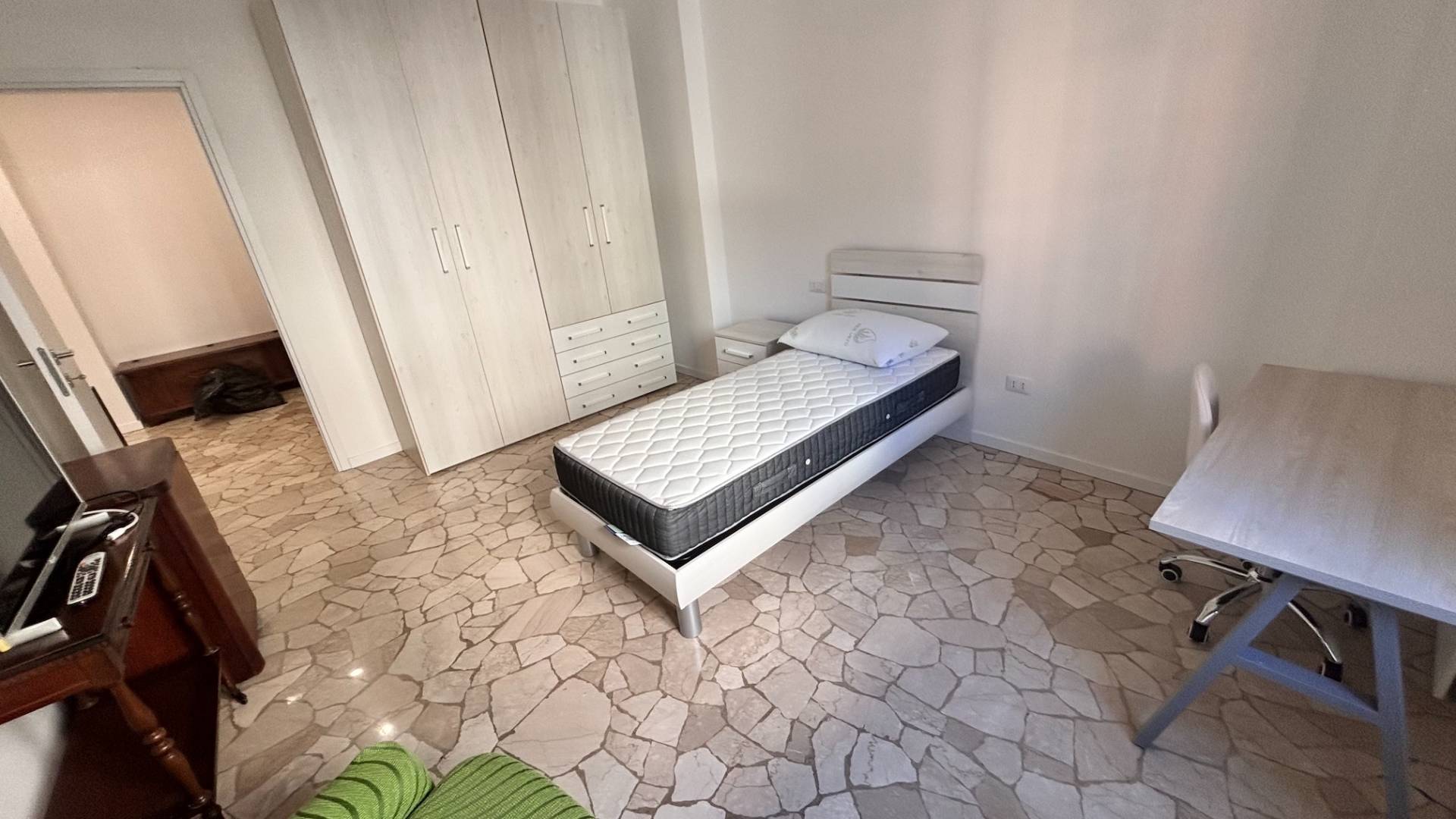 Lappartamento in ottime condizioni, dotato di porta blindata e sar consegnato completamente arredato, la cucina dotata di piastre a induzione, forno, frigorifero, lavastoviglie e lavatrice, le due ampie stanze sono fornite di letto singolo, armadio e scrivania.