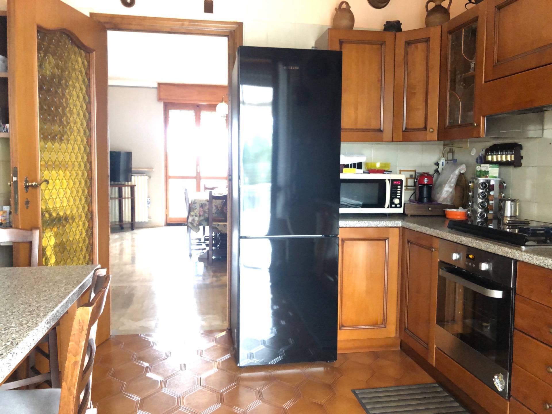 L'ingresso nel soggiorno con adiacente cucina abitabile con porta finestra per andare nel grande terrazzo con spaziosa veranda di oltre 20 mq adibita a lavanderia, due camere da letto e bagno, di pertinenza c' il garage doppio e la spaziosa cantina.