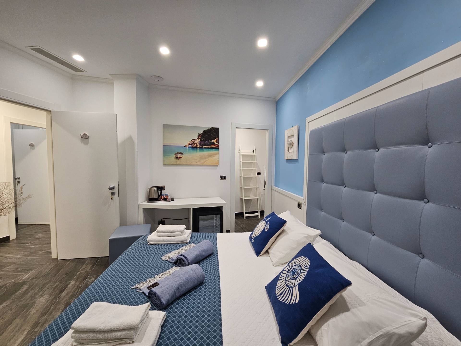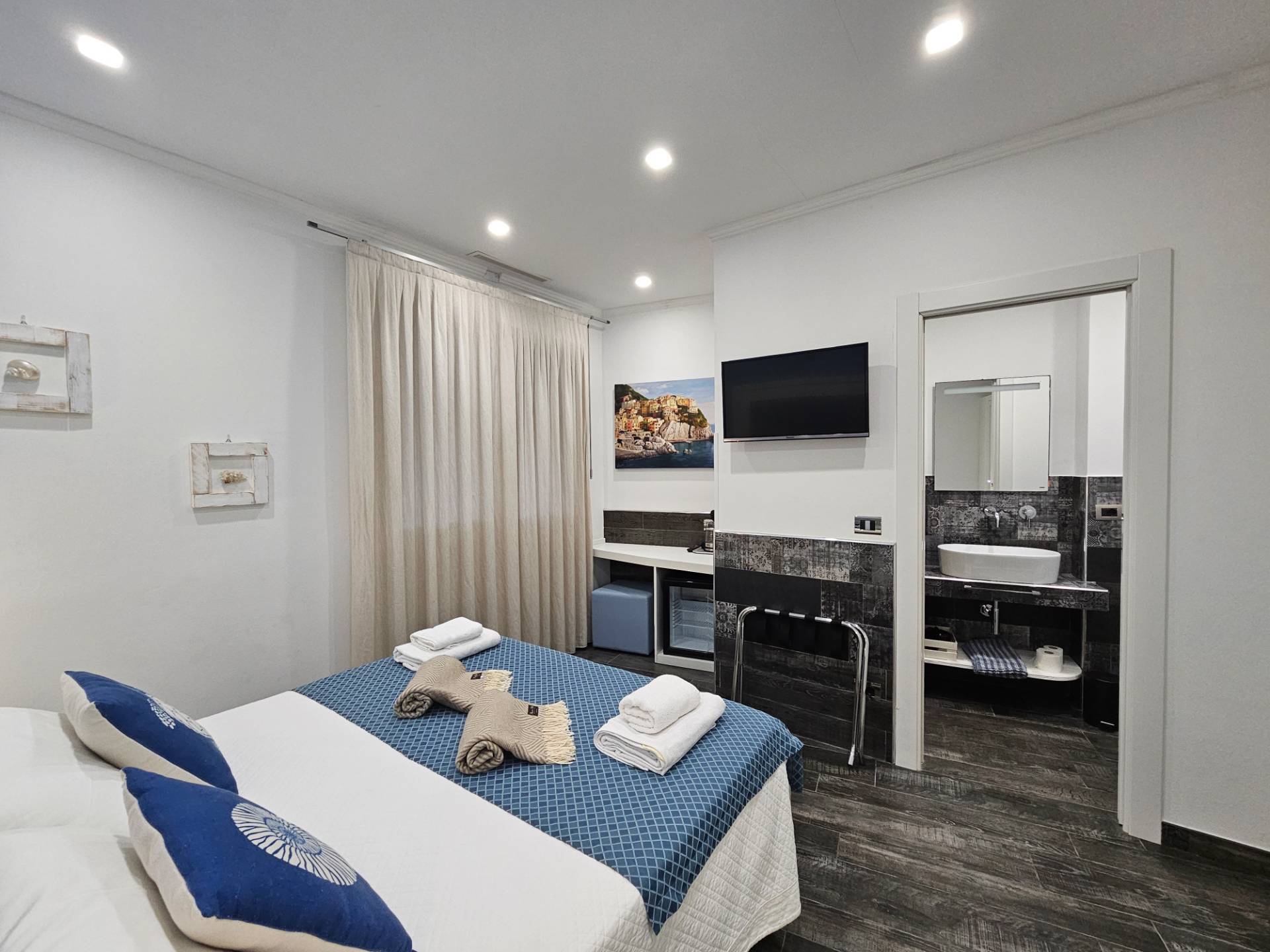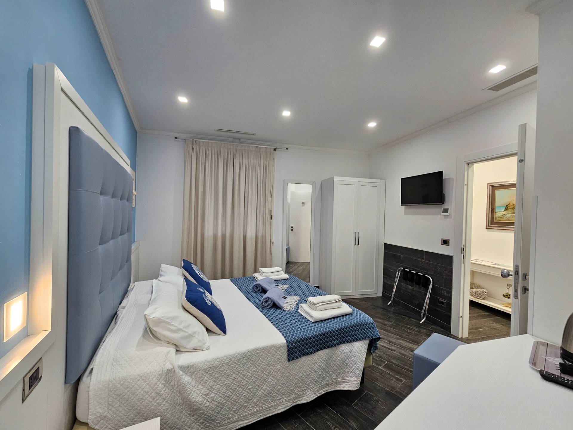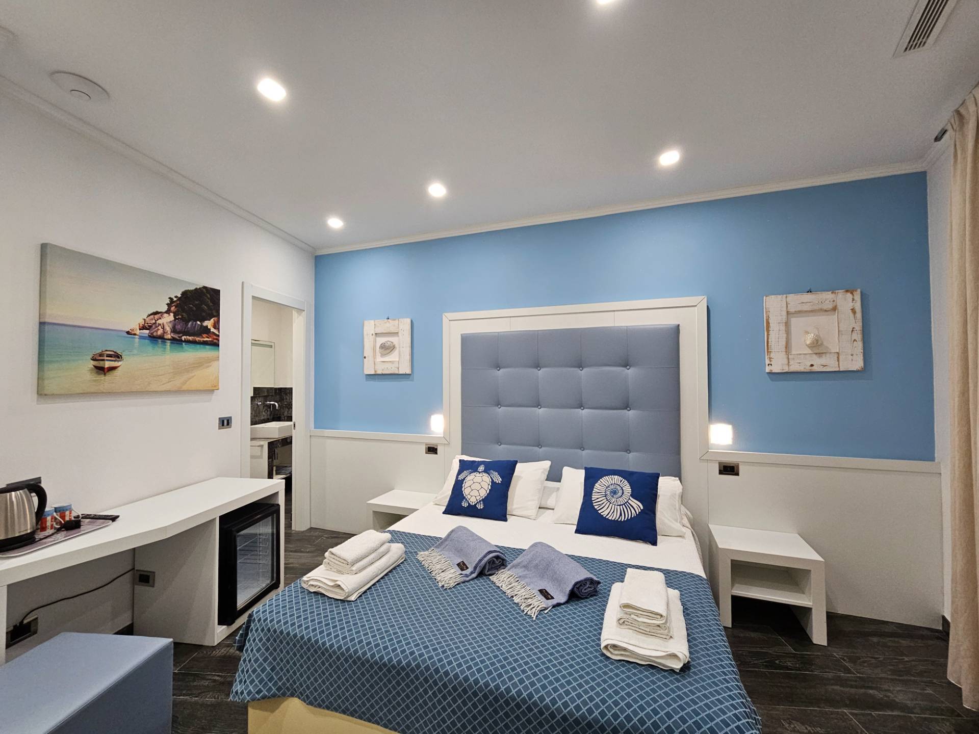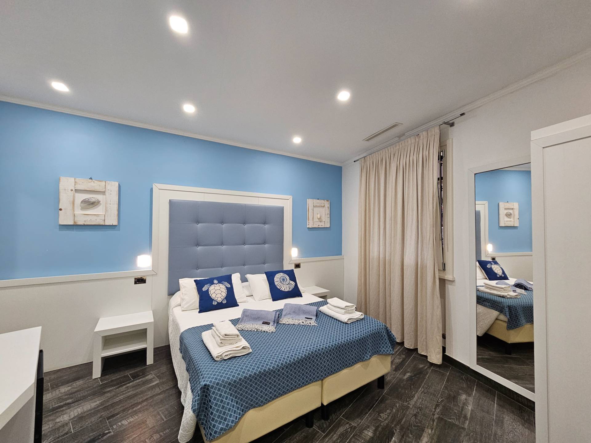 Labitazione si compone di: Due grandi camere matrimoniali, entrambe dotate di bagno privato con doccia.