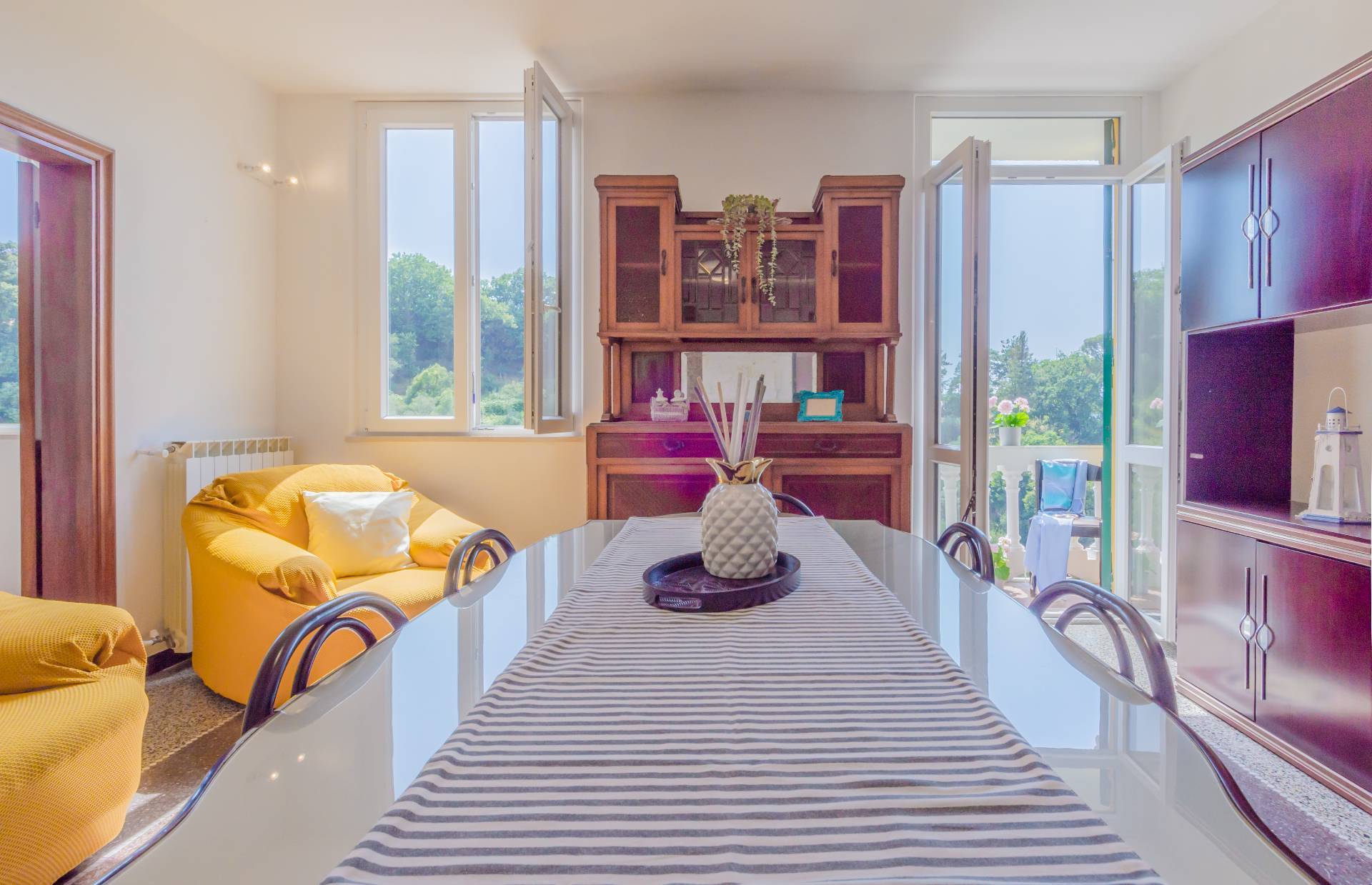 Con vista scorcio mare la casa presenta spazi generosi che la rendono ariosa e confortevole, situata a 1,0 km dal centro di Moneglia si trova al secondo piano di una palazzina senza ascensore ed composta da ingresso, angolo cottura, soggiorno, tre camere, bagno, ripostiglio, doppio balcone e posto auto condominiale.