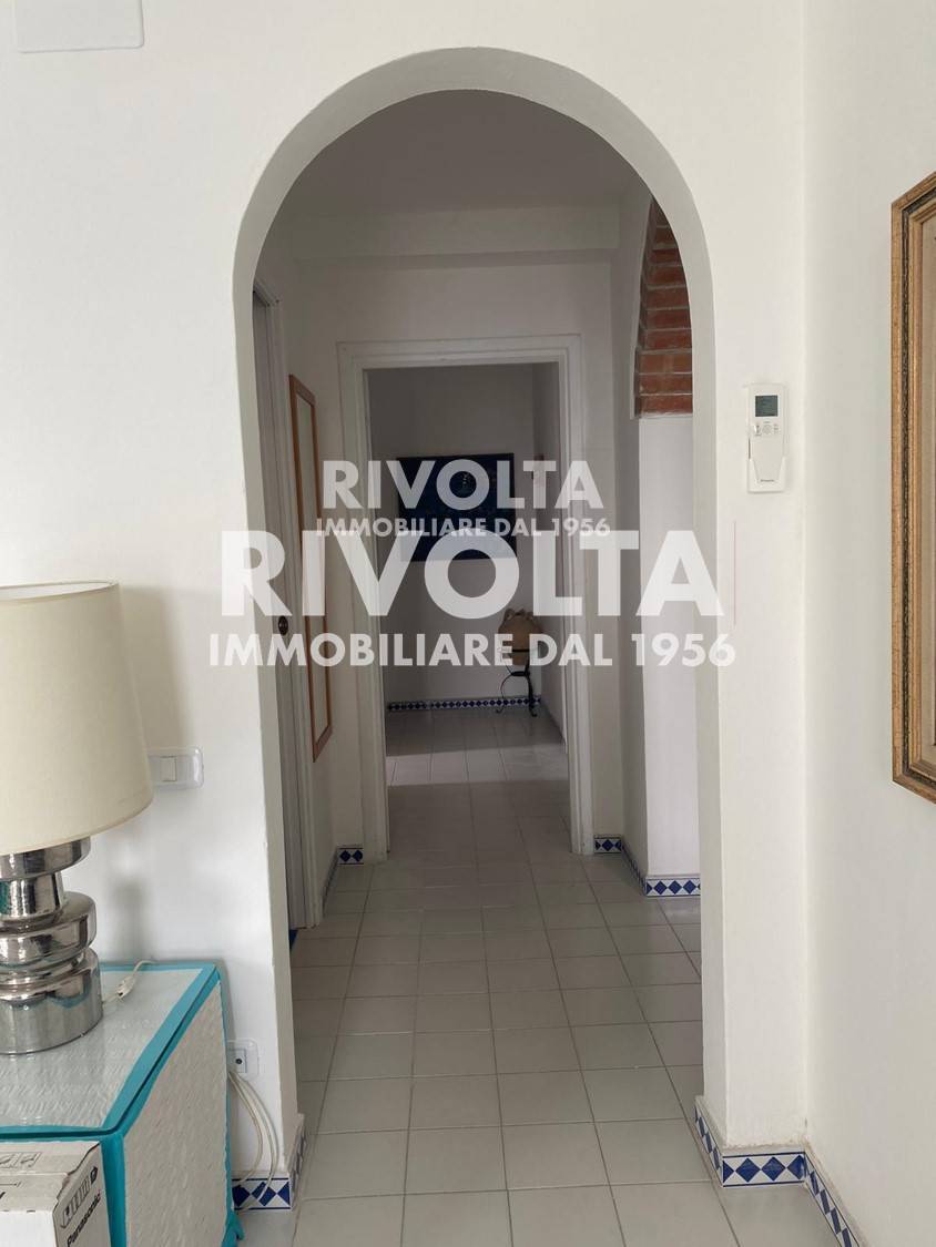 L'immobile situato al terzo piano di una palazzina di quattro composto da soggiorno vista mare, angolo cottura due camere da letto matrimoniali, due bagni, tra cui uno en suite, una camera da letto con due letti singoli.