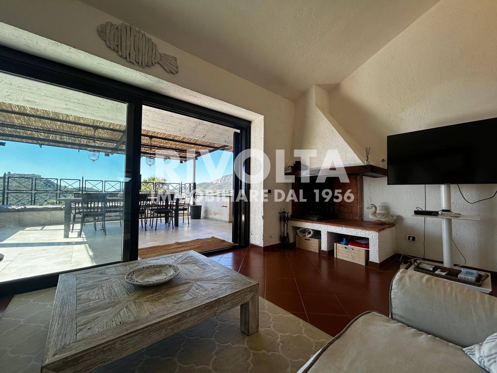 Lingresso si apre su un ampio living panoramico, impreziosito da un elegante camino e da una splendida vista mare, con accesso diretto alla grande terrazza di circa 250 mq che abbraccia lintera propriet.