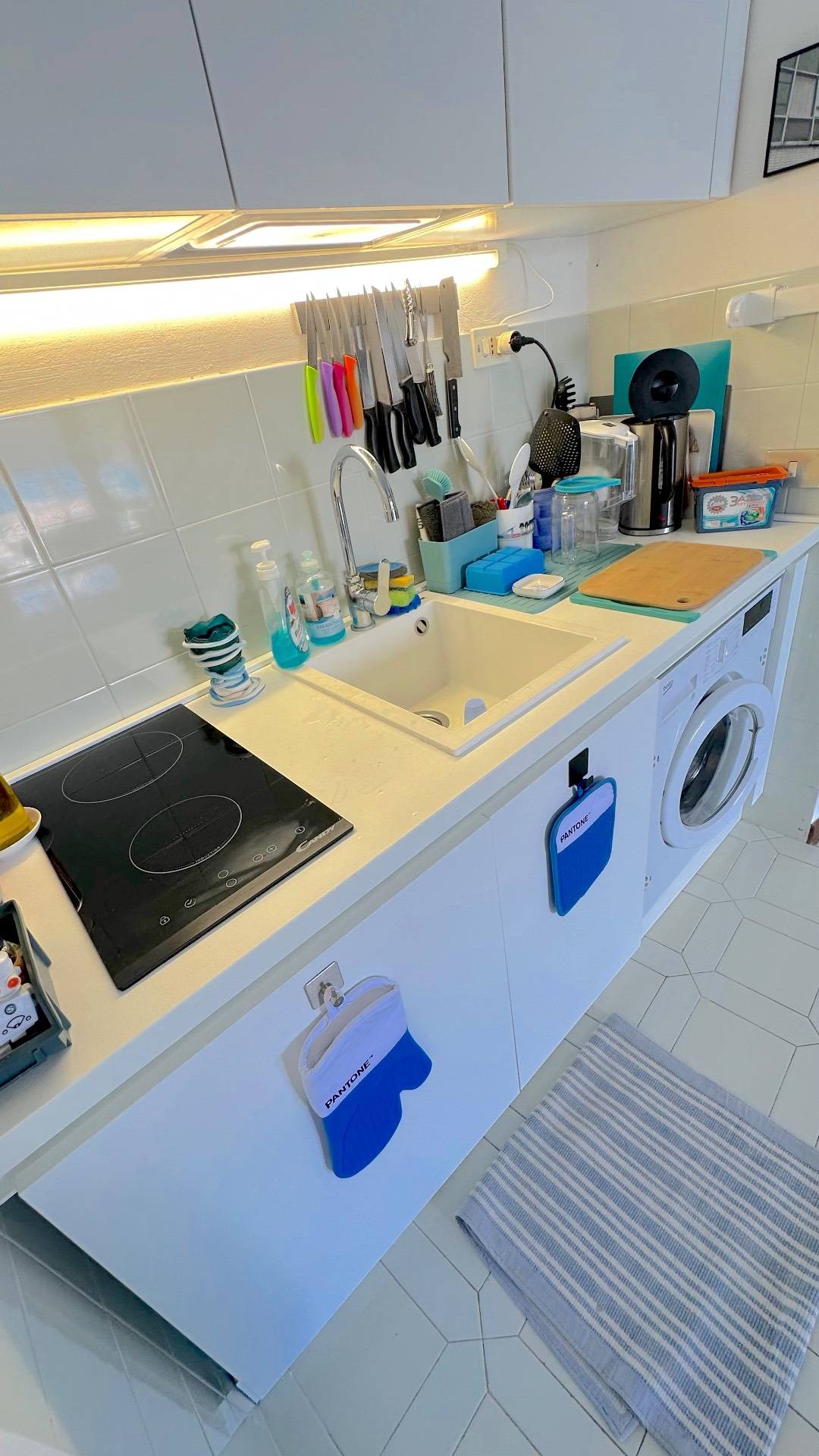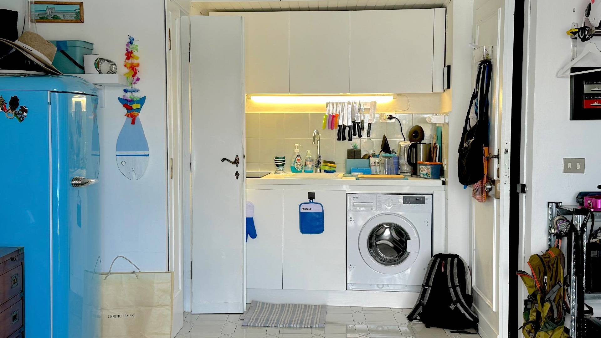 Lappartamento, sapientemente organizzato, comprende un soggiorno con angolo cottura, bagno e una zona notte su soppalco che ottimizza gli spazi mantenendo comfort e privacy.