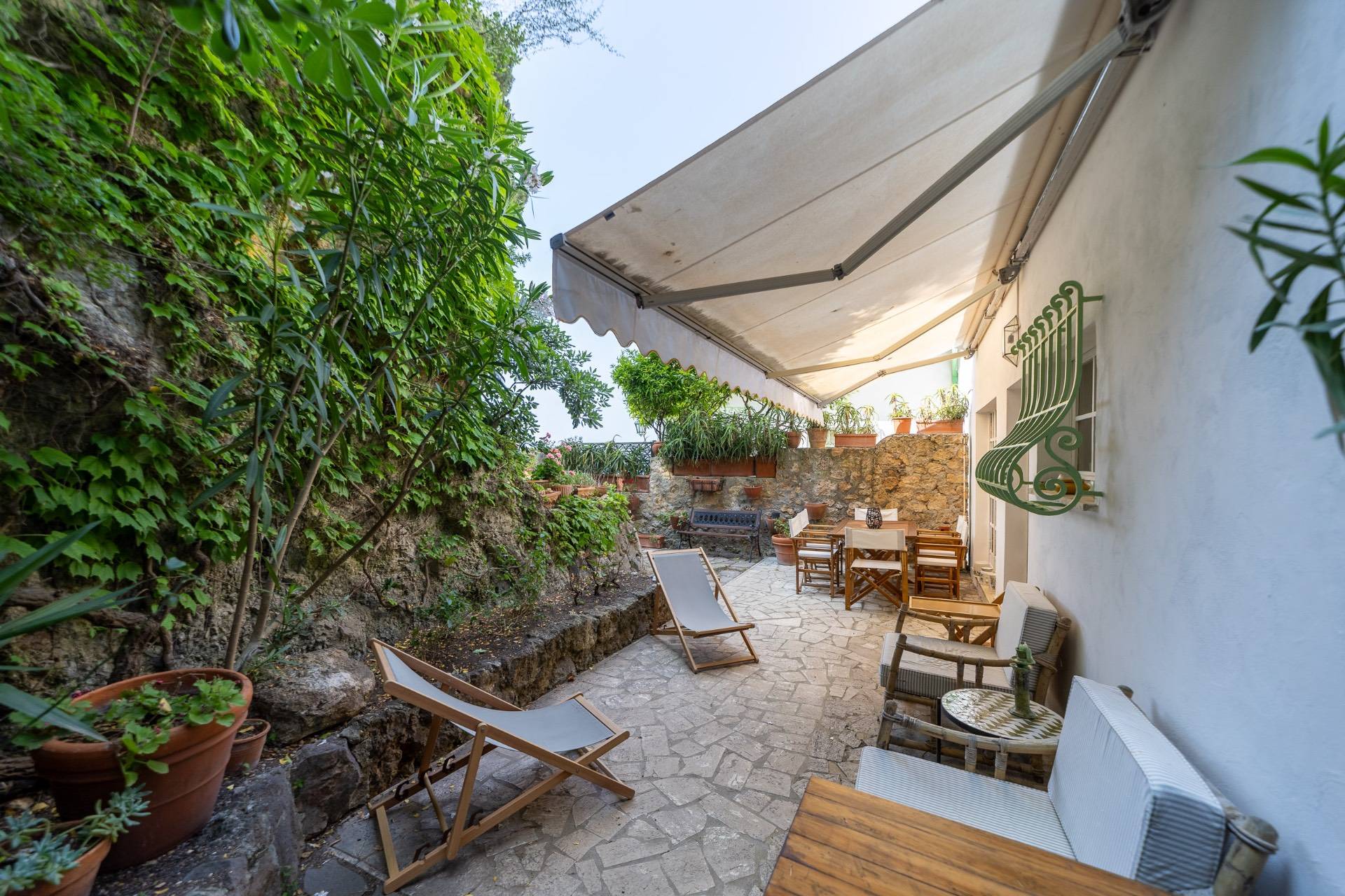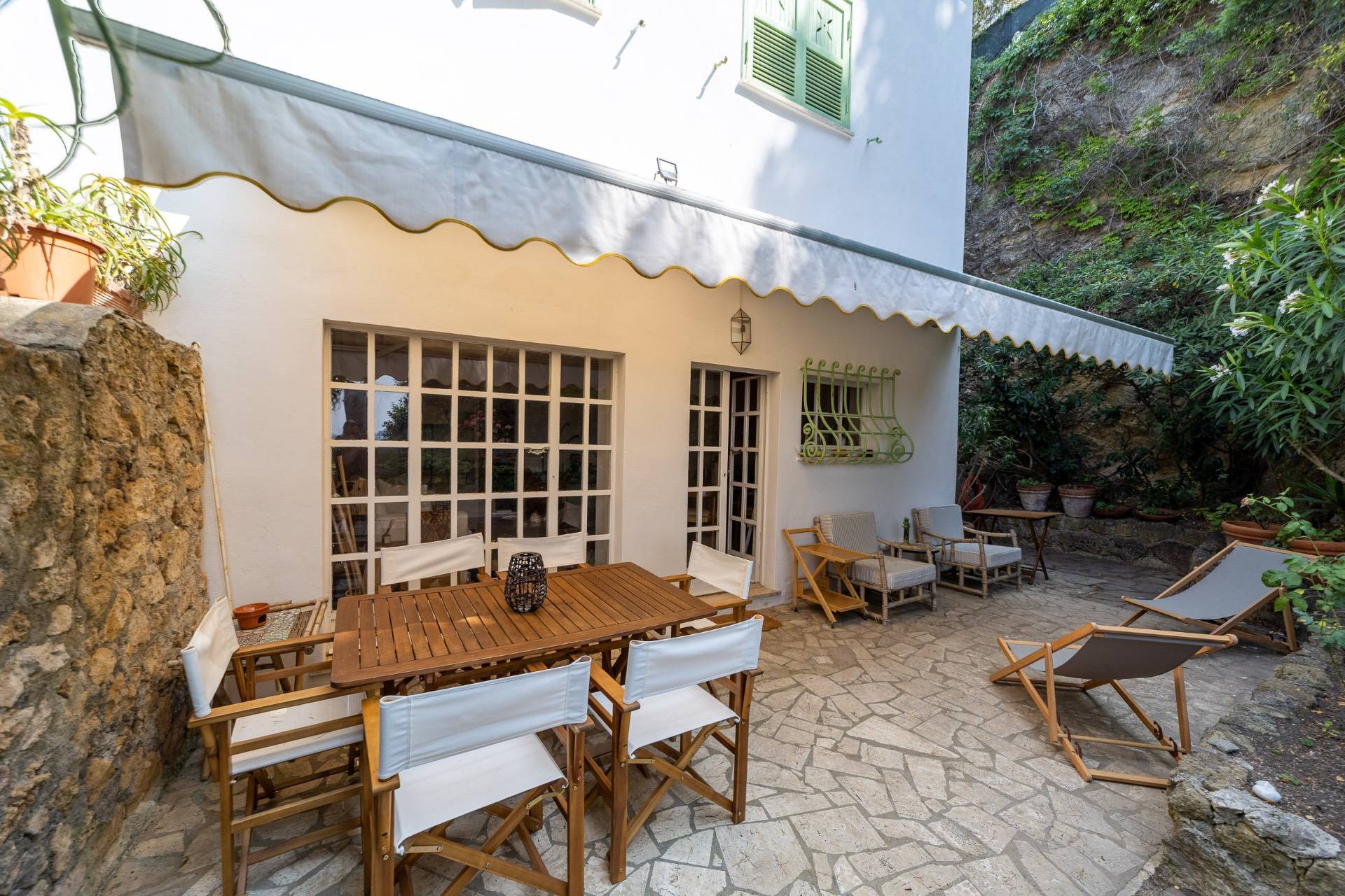 Esternamente l'appartamento circondato da una corte pavimentata, in parte ombreggiata; luogo ideale dove poter pranzare o semplicemente rilassarsi in poltrona respirando l'aria di mare. Il punto di forza della propriet la discesa a mare con piattaforma privata, accesso esclusivo del condominio che permette di fare il bagno nel mare cristallino scendendo pochi gradini.