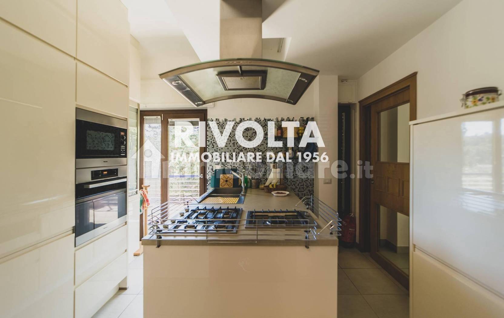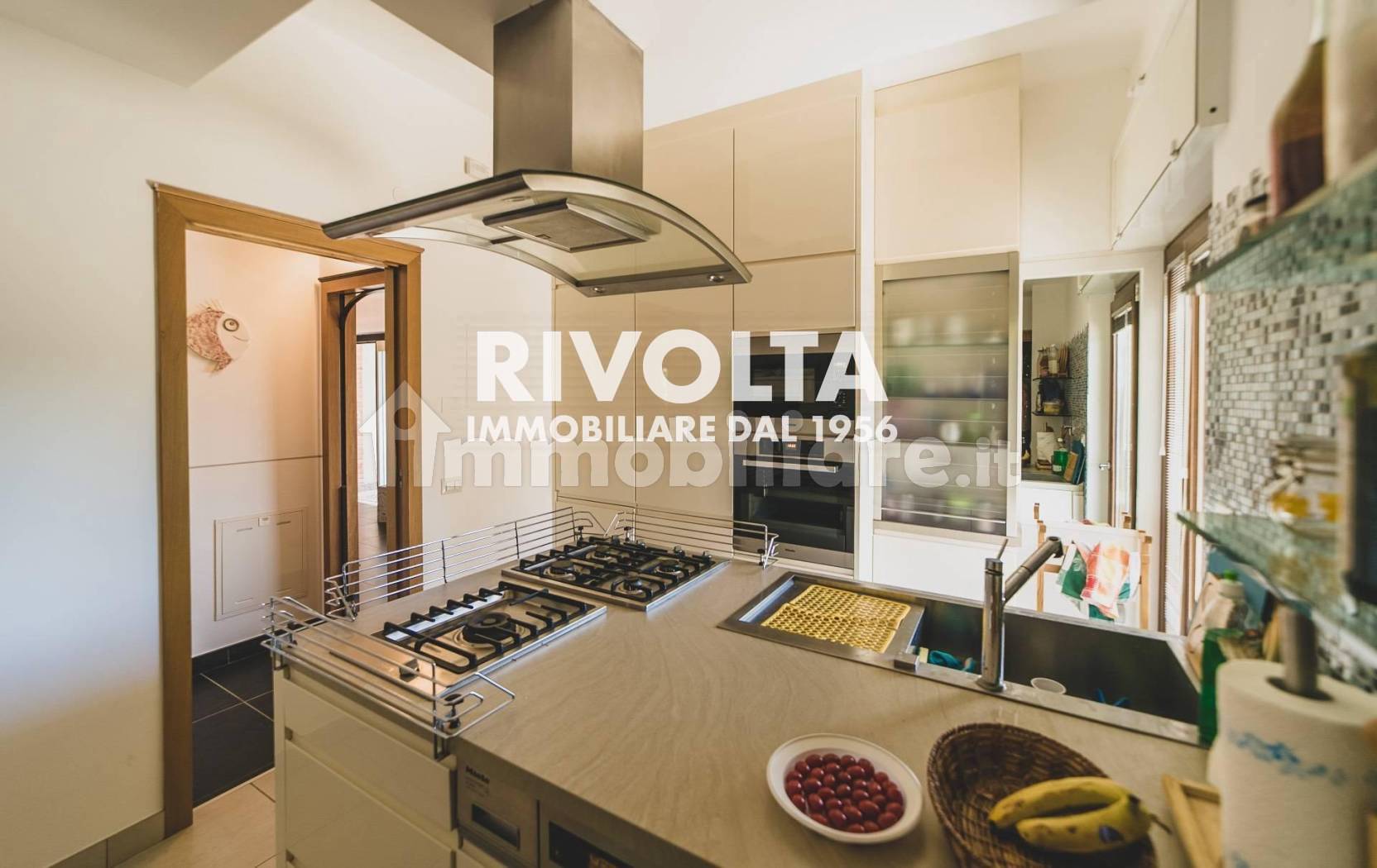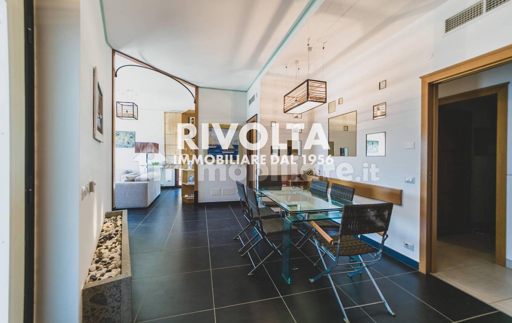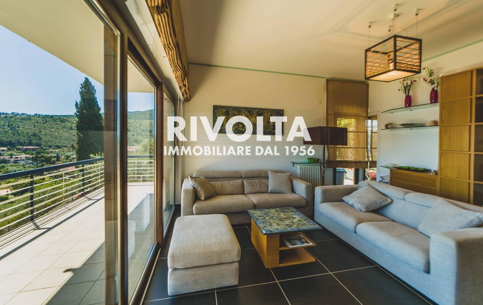 Rivolta affitta Monte Argentario/ Porto Santo Stefano/ via dell'Olmo. Elegante appartamento di lusso con affacci panoramici e giardino privato a pochi metri dal mare. Composto da ingresso, salone luminoso con grandi vetrate da cui si accede al terrazzo con vista sulla baia. Cucina abitabile e accessoriata con isola al centro, camera di servizio con bagno.