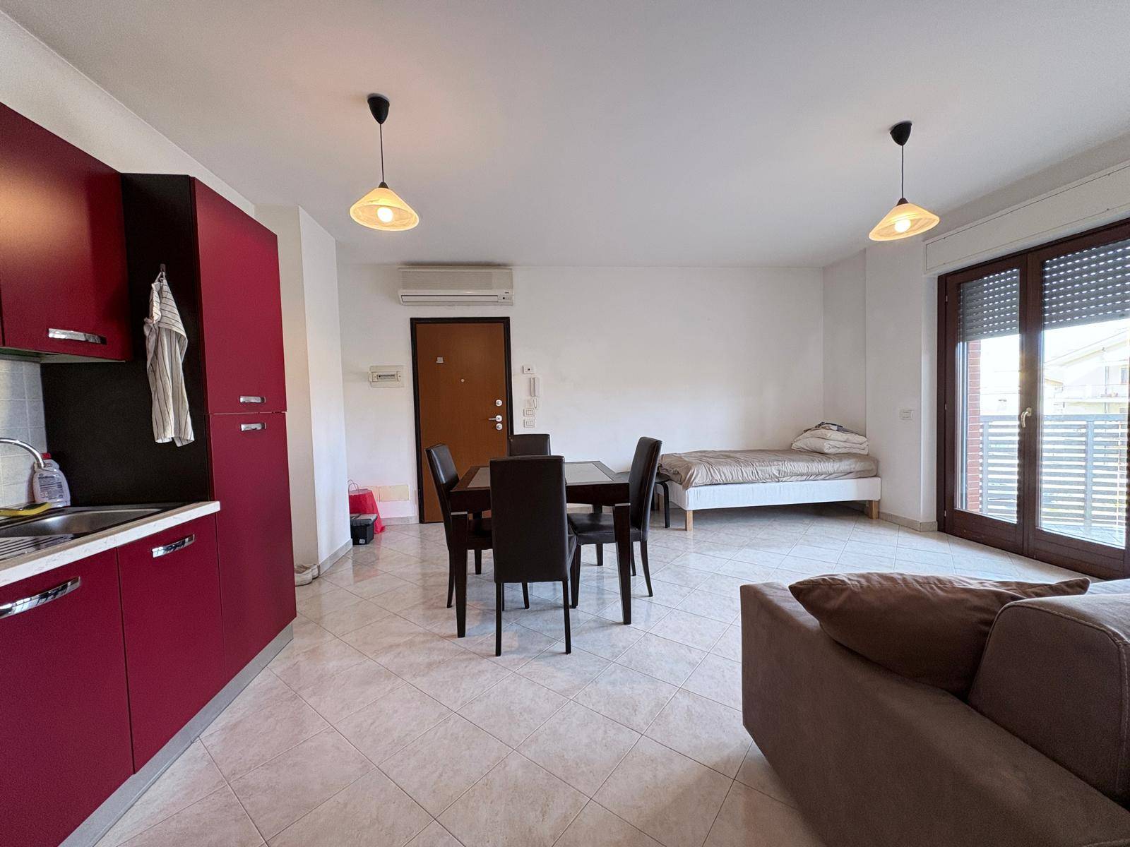 Lappartamento, di 44 mq, arredato con angolo cottura e divano letto.