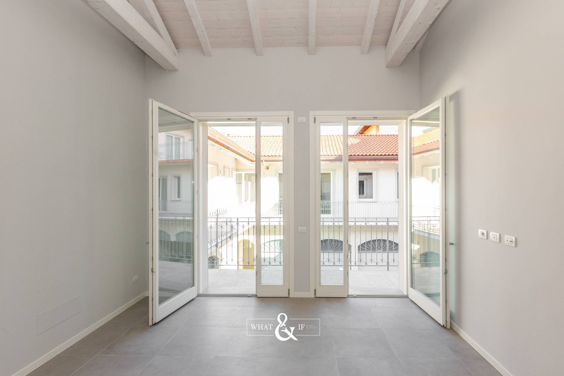 Classe energetica A3, con riscaldamento e raffrescamento a pavimento tramite impianto geotermico; controllo e gestione della temperatura autonomi (impianto centralizzato con conta-consumi). Appartamento trilocale posto al piano primo del corpo "B" caratterizzato da travi a vista molto alte e composto da soggiorno con cottura, disimpegno, bagno, cameretta, ripostiglio/lavanderia, camera matrimoniale con bagno en-suite oltre al balcone privato.