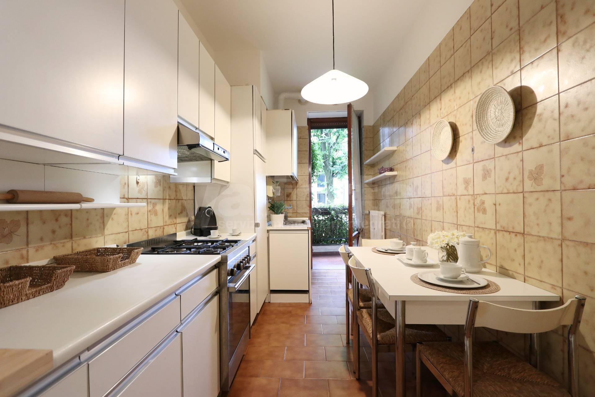 Anche la cucina ha accesso diretto al balcone, uno spazio esterno confortevole dove poter pranzare nelle belle giornate o semplicemente rilassarsi.