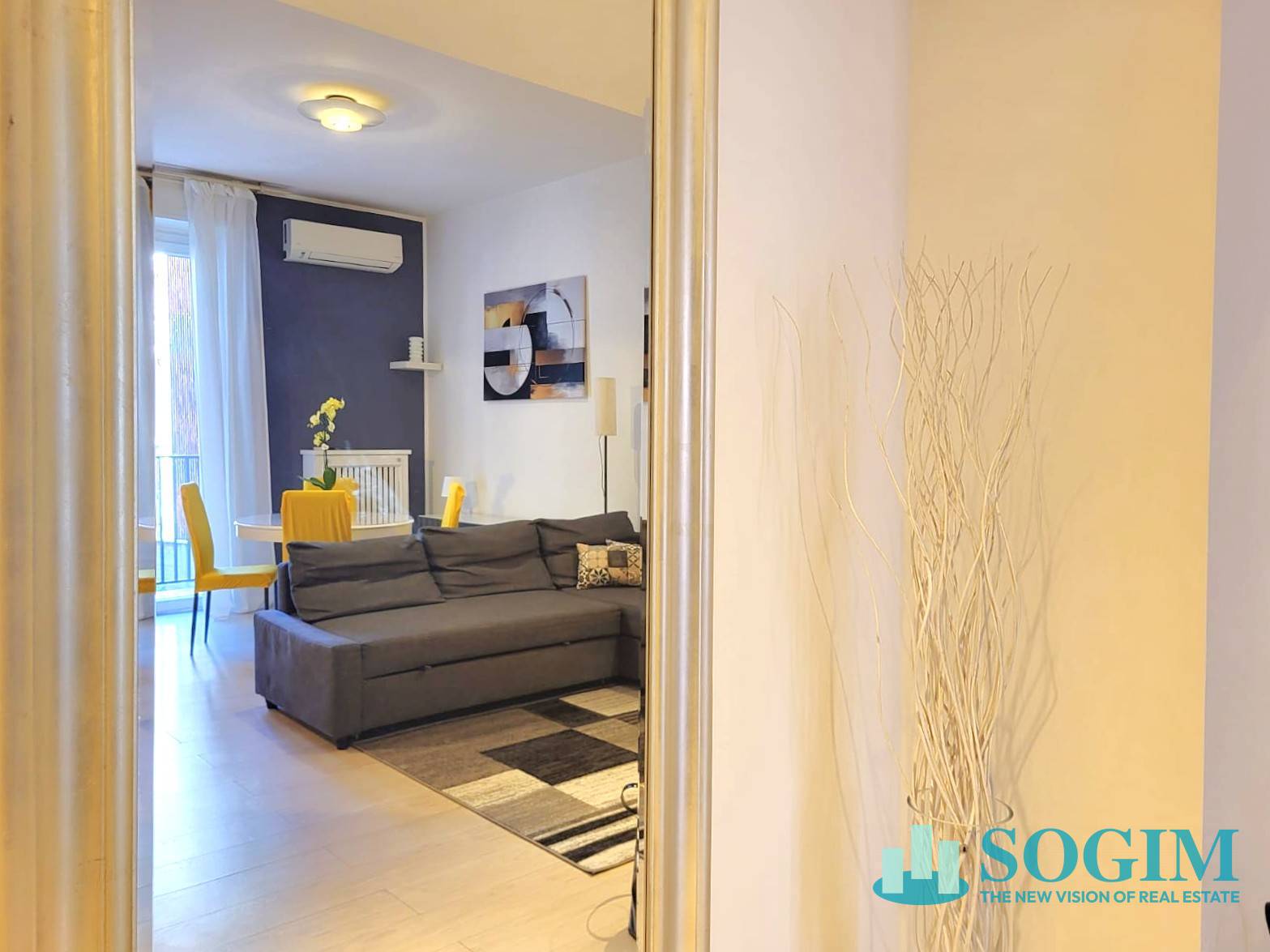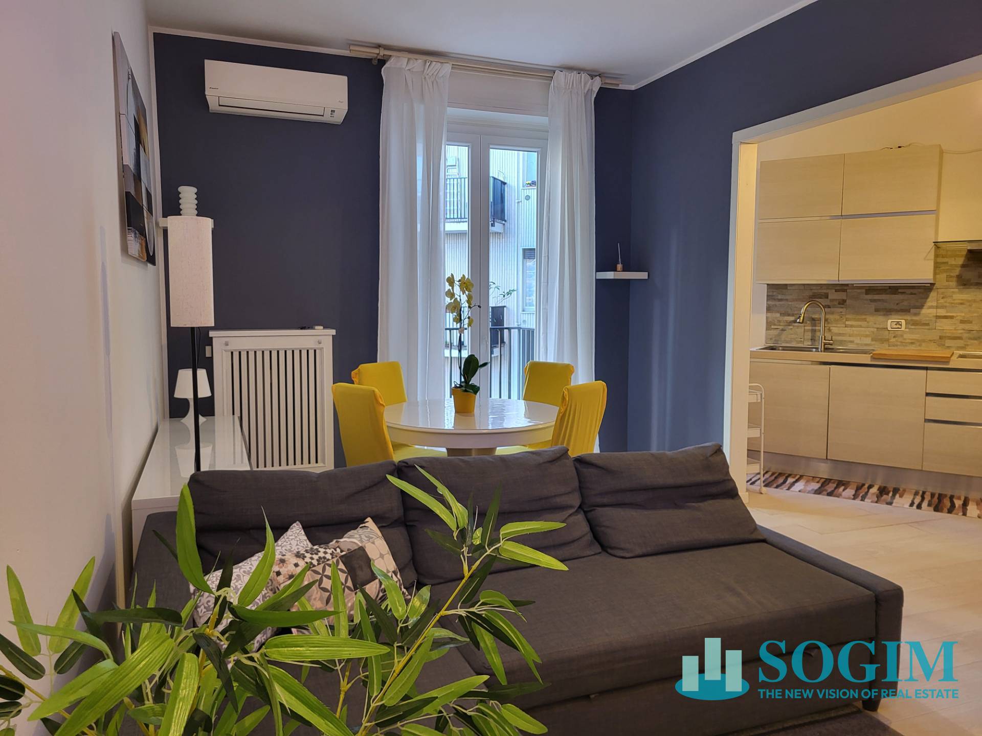 Internamente l'appartamento composto da: ingresso, soggiorno con area pranzo e accesso al balcone, cucina a vista dotata di tutti gli elettrodomestici, il disimpegno conduce alla camera matrimoniale e al bagno finestrato con vasca.