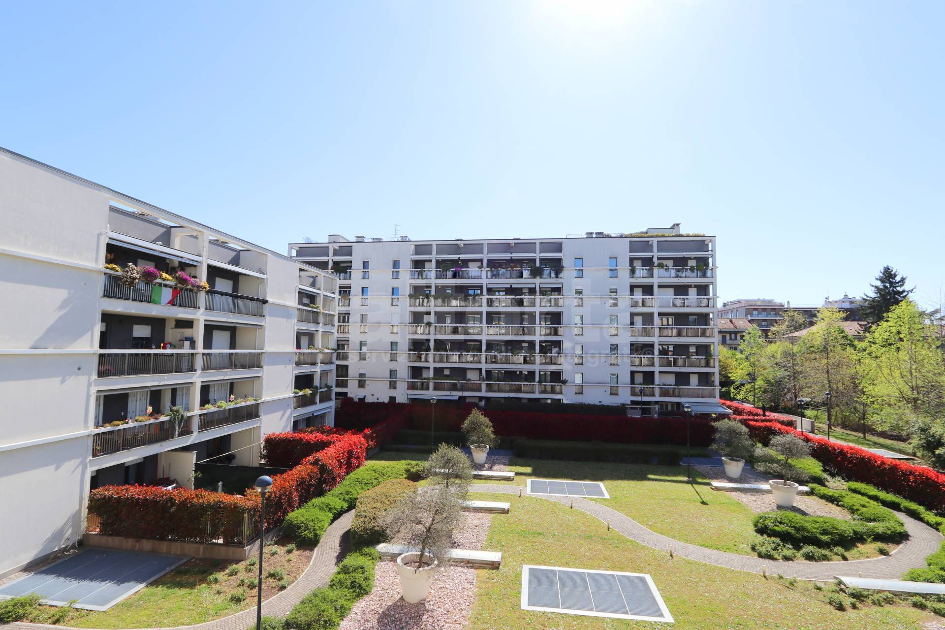 Ad arricchire l'appartamento c' un ampio terrazzo che si affaccia sul tranquillo giardino condominiale, creando uno spazio perfetto per momenti di relax all'aria aperta.