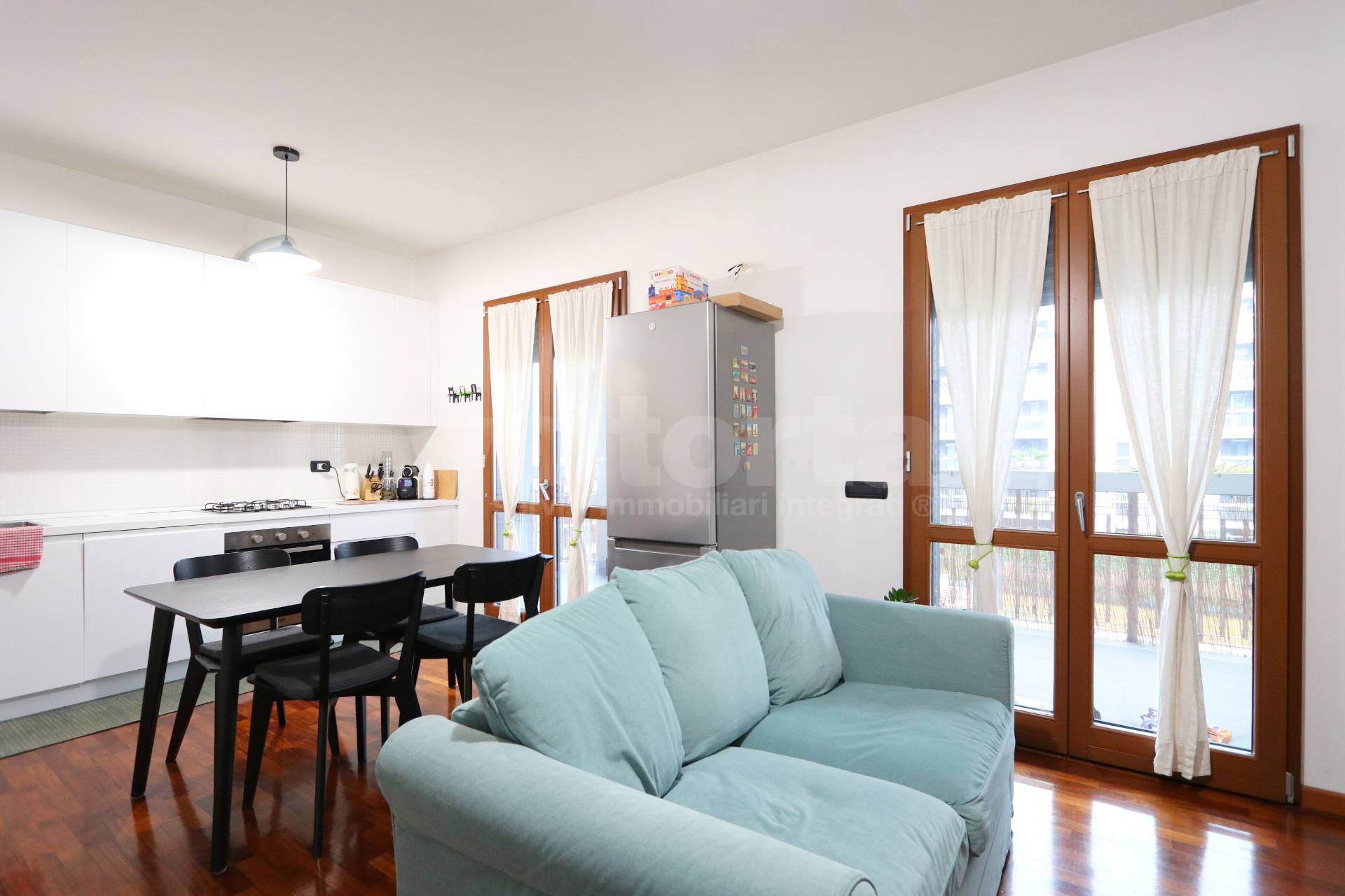 L'appartamento caratterizzato da ottime finiture e da uno spazio ben organizzato: si accede direttamente alla zona giorno con cucina a vista, un ambiente che offre una piacevole vivibilit.