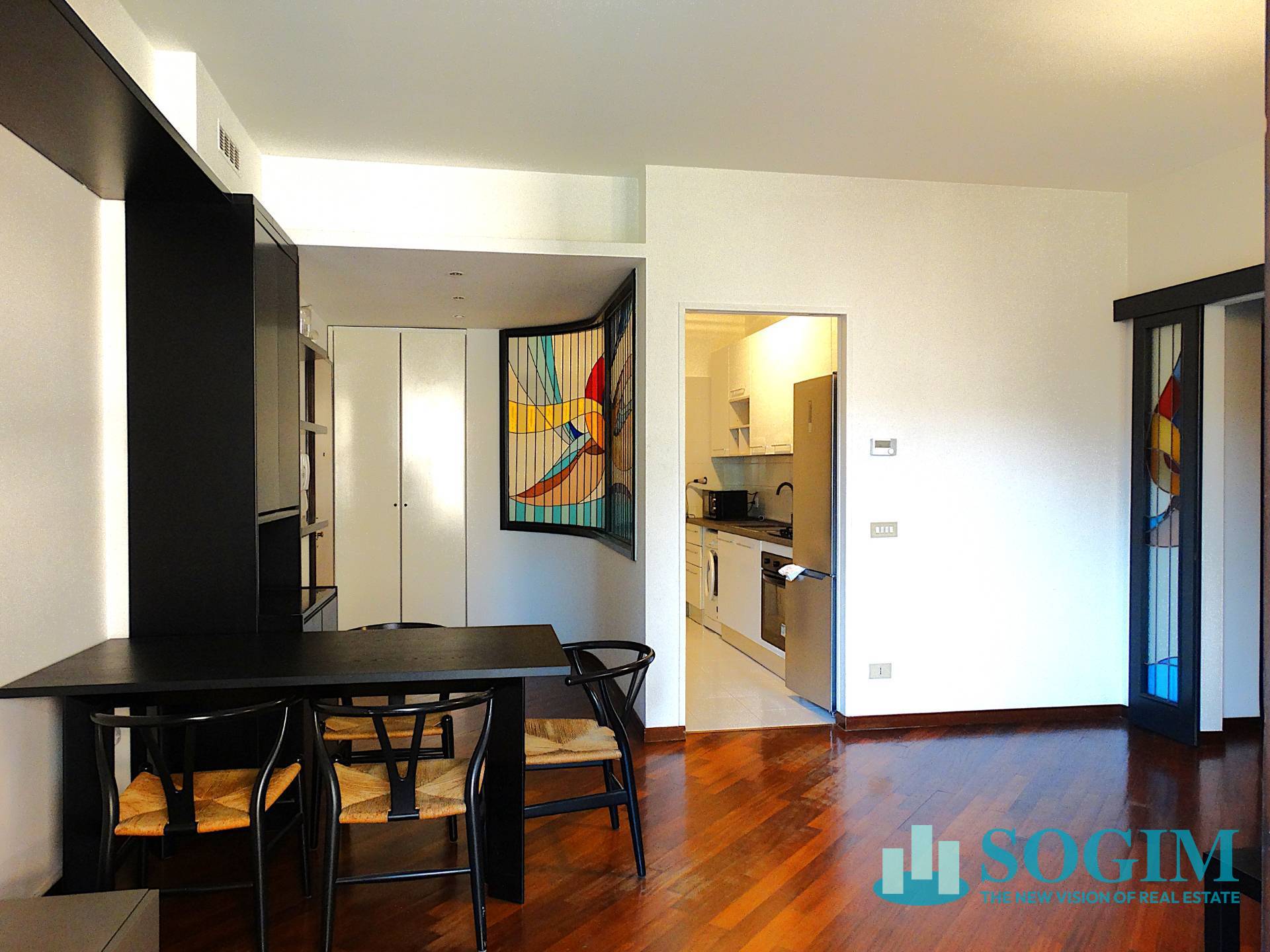 Lappartamento composto da soggiorno, cucina separata , camera matrimoniale, studio e bagno padronale.