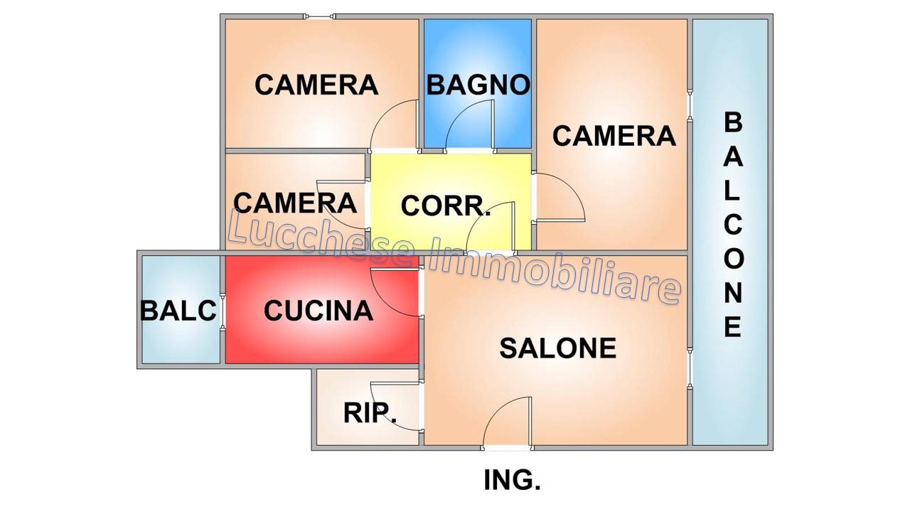 Composta da ampio salone, cucina abitabile, ripostiglio, tre camere da letto e bagno, con doppio balcone panoramico e esposizione soleggiata.