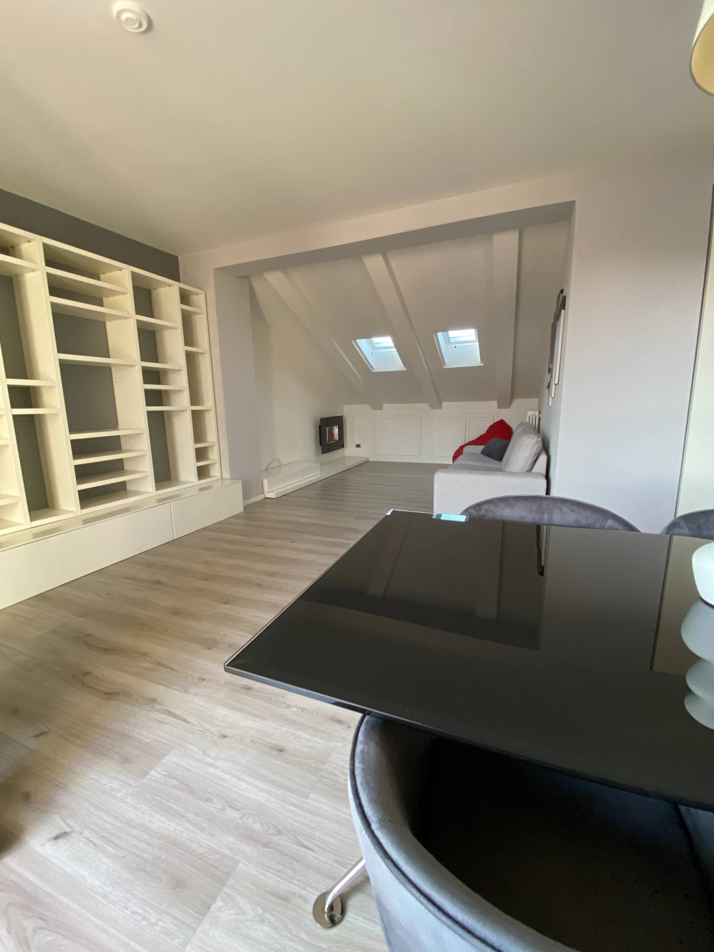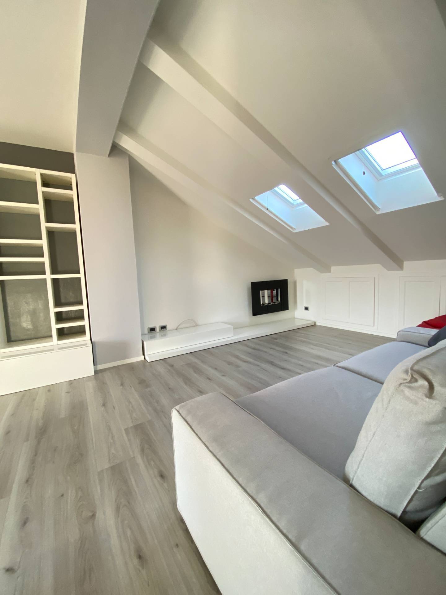 AYAA30 - SACRO CUORE -Splendido attico ristrutturato e arredato nel 2026 e mai abitato! Con ingresso nel salone con camino, zona pranzo e cucina moderna, disimpegno, bagno padronale con vasca e doccia, stanza armadi, disimpegno, camera matrimoniale ampia con balcone e bagno, ampia balconata per splendide colazioni e ceme. pannelli fotovoltaici, clima inverter, Con ascendore Classe b Euro 900 mensili Contatta l'inserzionista
