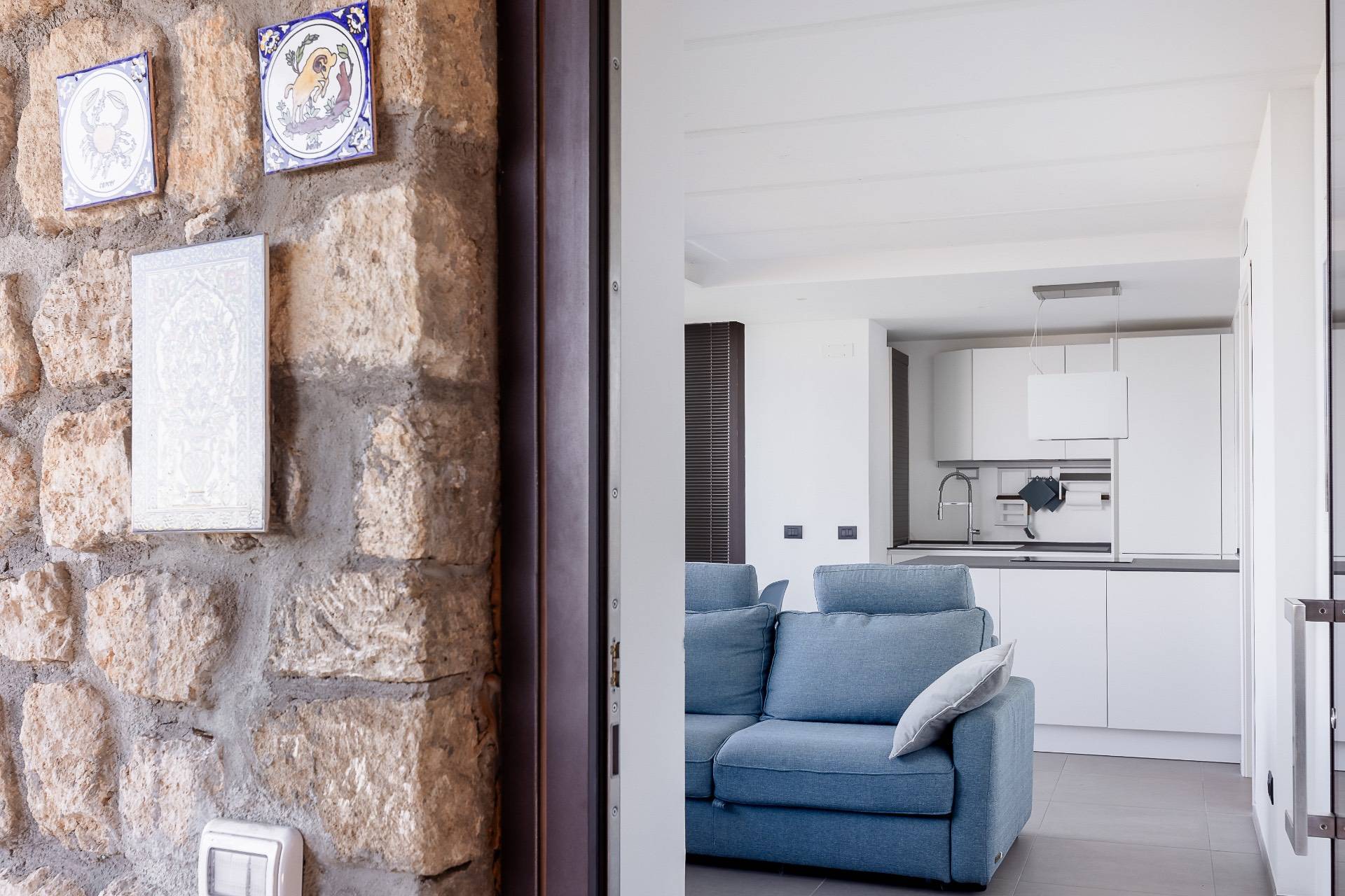 Lingresso conduce a un ampio soggiorno accogliente, ideale per momenti di relax e convivialit, con accesso diretto alla terrazza panoramica, perfetta per pranzi allaperto e per godere di tramonti mozzafiato.