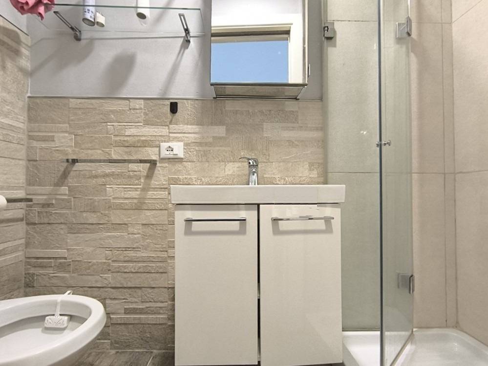 Il servizio igienico completo di box doccia, mentre un pratico ripostiglio stato ricavato nel sottoscala; inoltre presente una comoda lavanderia esterna situata nel pozzo luce, dotata di lavatrice.