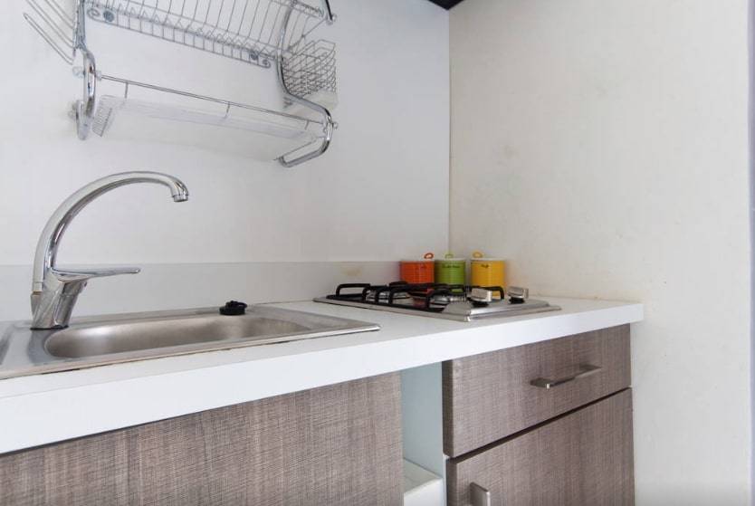La propriet cos composta: ingresso su ampia zona living con divano/letto, cucinotto, comodo studiolo con soppalco con letto matrimoniale e bagno con doccia.