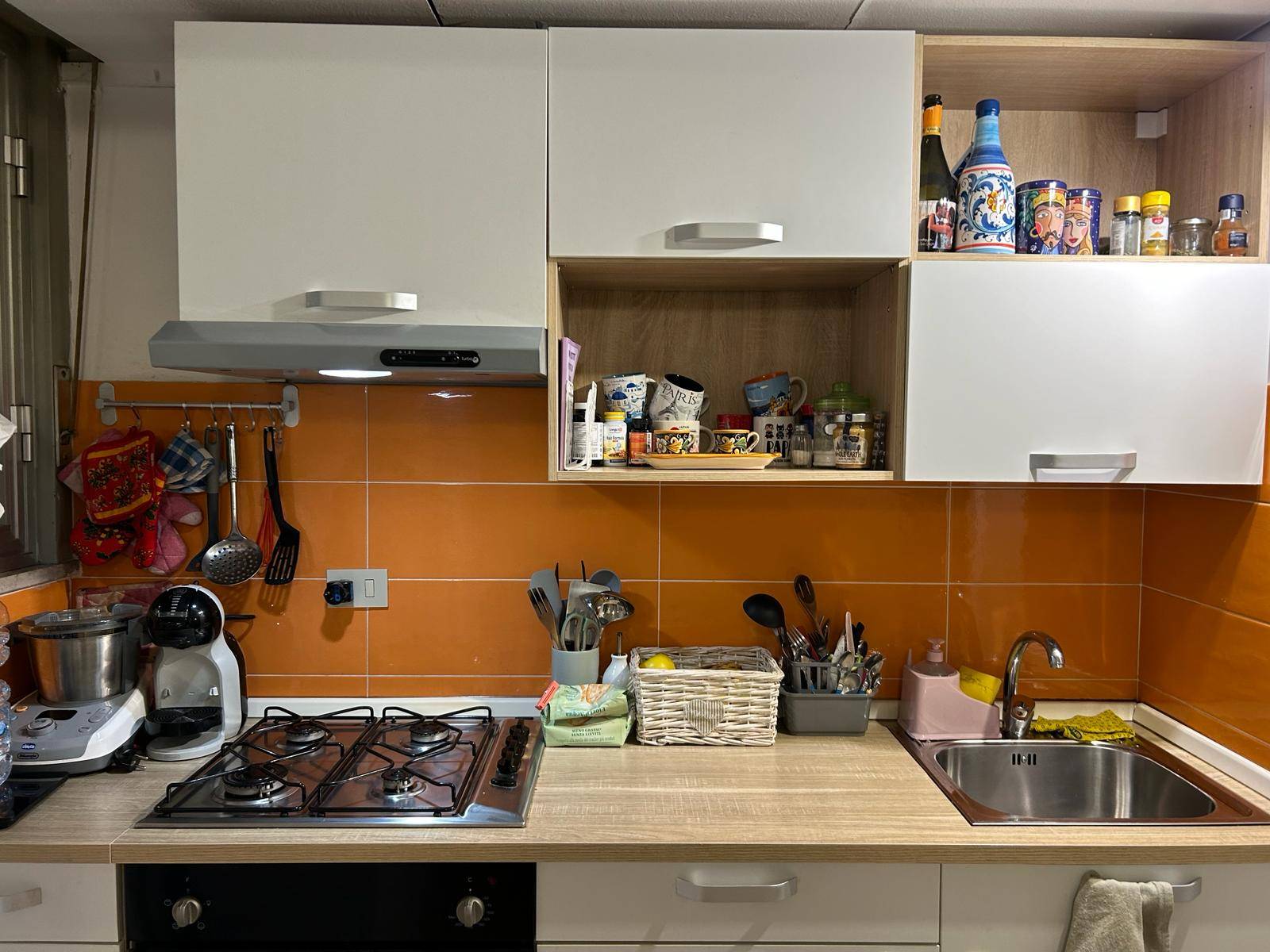 Oltre il blocco cucina la casa dotata di due armadi a muro e di una bella credenza in noce; per il resto verr consegnata priva di altri arredi.