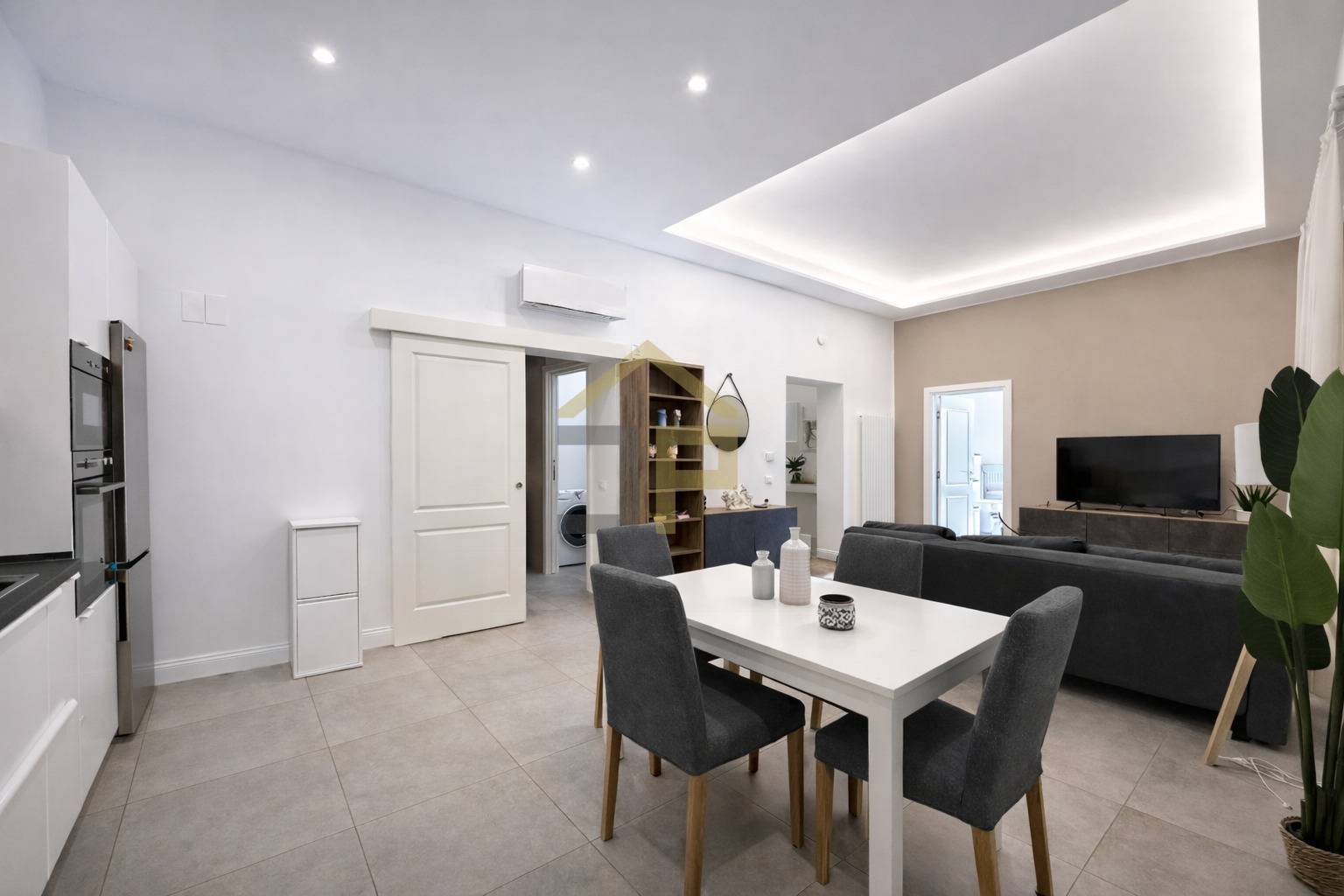 Gli interni si presentano completamente ristrutturati e rifiniti con materiali di qualit: pavimentazione in gres, infissi in PVC e vetrocamera, persiane esterne in alluminio e porte interne in legno laccato bianco.
