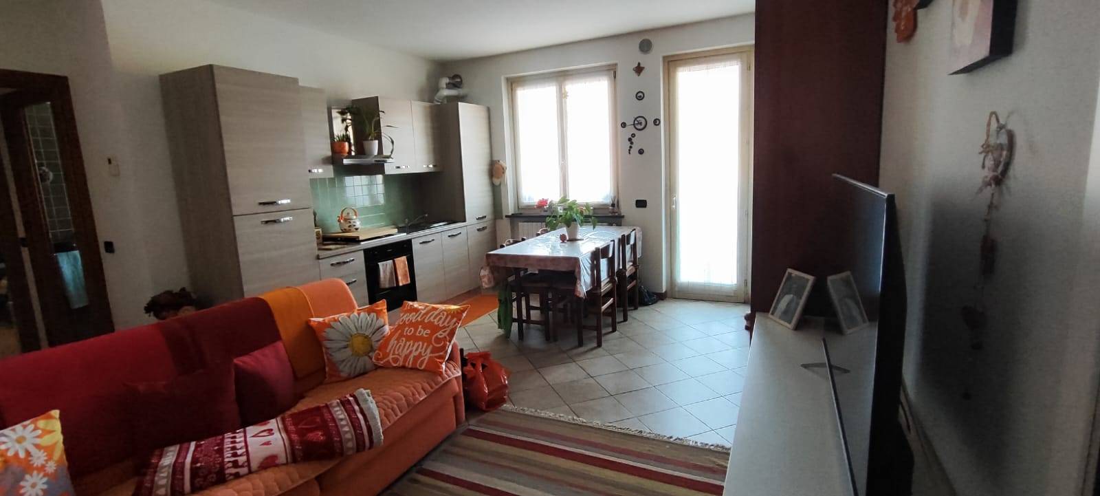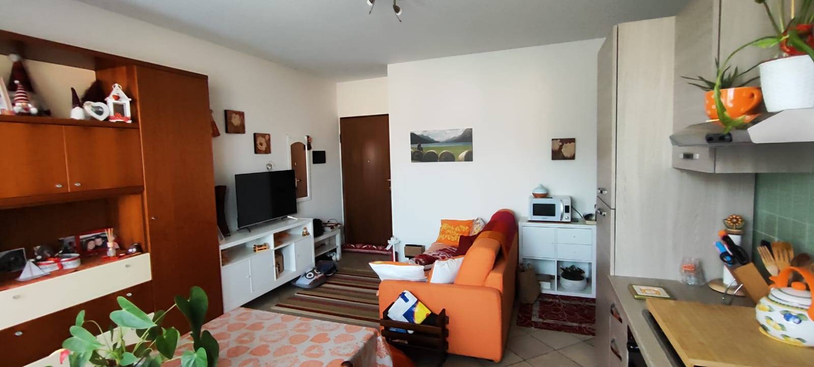 L'appartamento si apre sulla zona giorno con porta blindata.