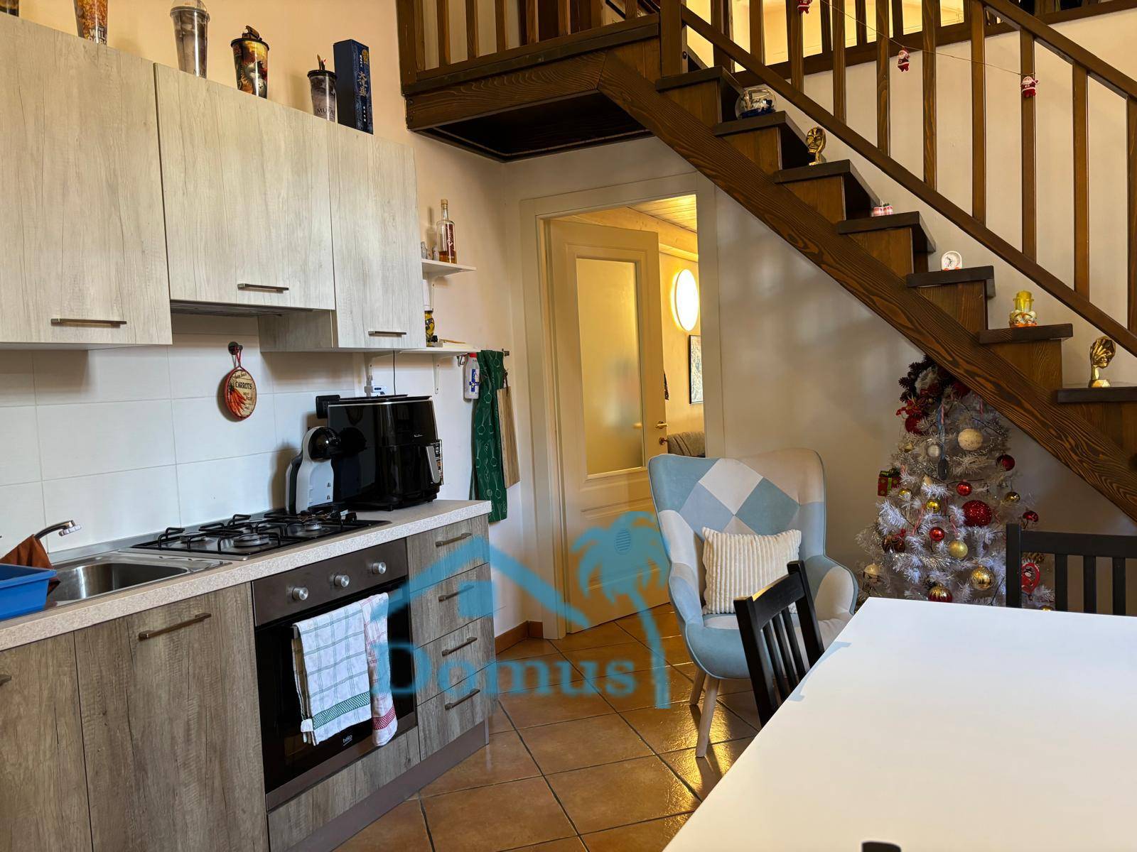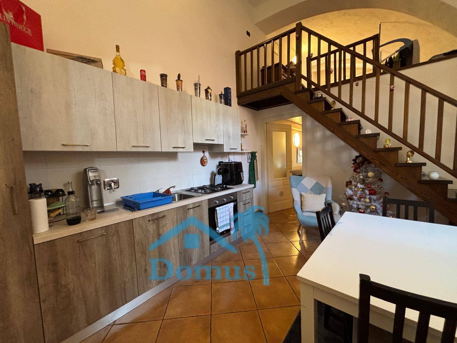 PINEROLO, piazza Duomo, in casa trifamiliare, alloggio arredato completamente ristrutturato a nuovo composto da ingresso con accesso su disimpegno con porta blindata, soggiorno con angolo cottura e scala a vista per camera soppalcata, camera, bagno, videocitofono, termoautonomo.
