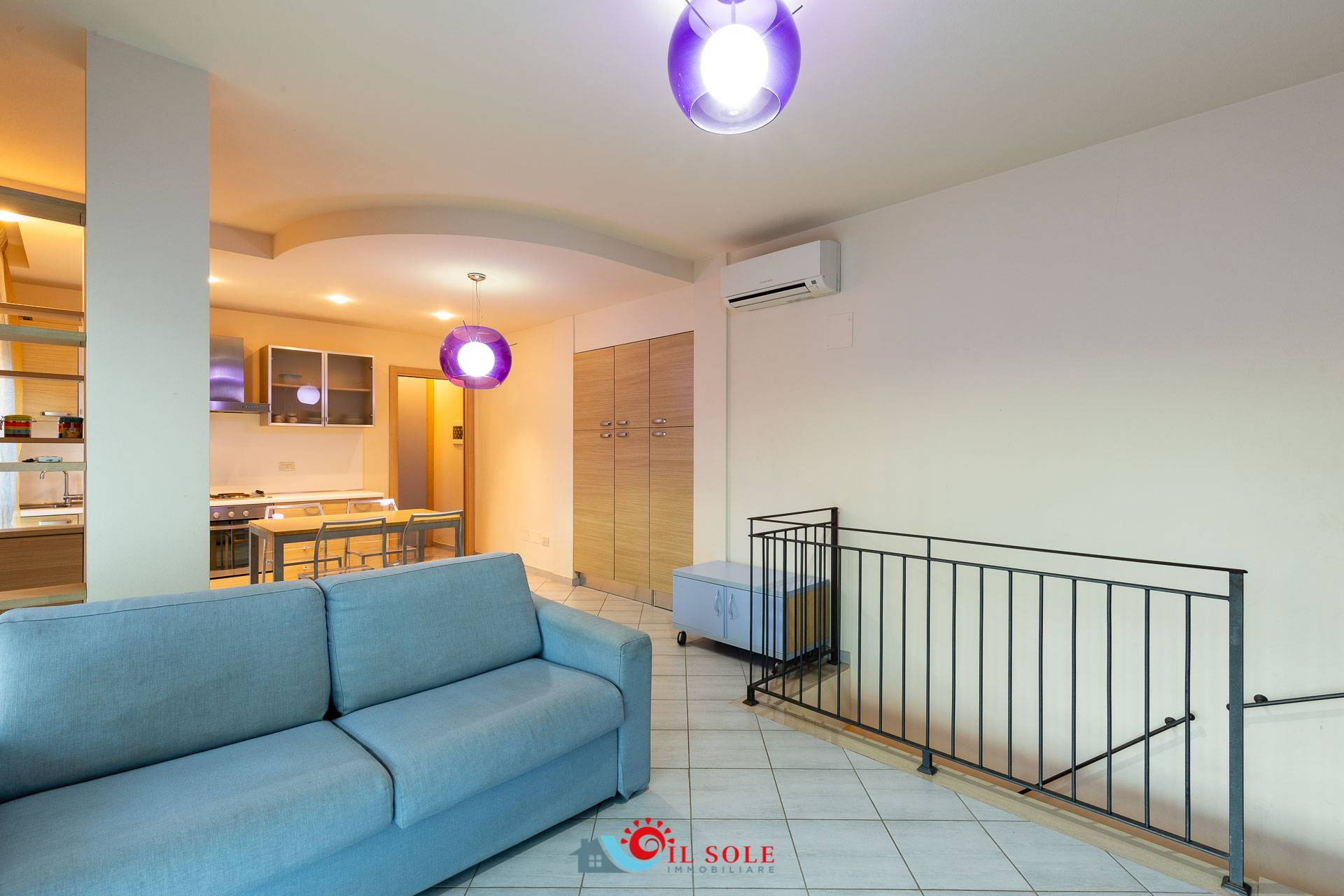 Il trilocale si sviluppa su due livelli : al primo livello troviamo soggiorno con cucina a vista, da cui possibile accedere direttamente al giardino e primo bagno; Al livello inferiore una camera matrimoniale, una cameretta e secondo bagno.