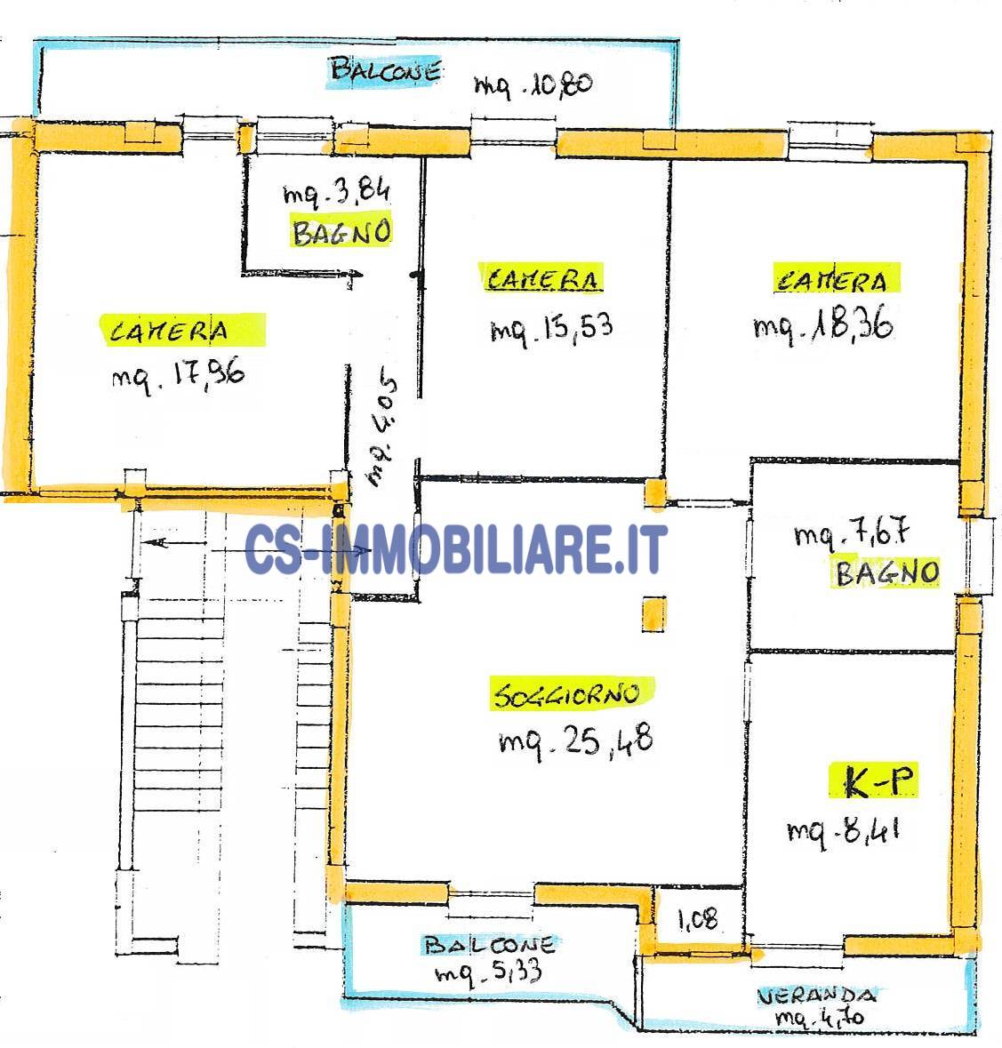 Limmobile composto da un soggiorno + cucina-pranzo + 3 camere + 2 bagni + 2 balconi + veranda.