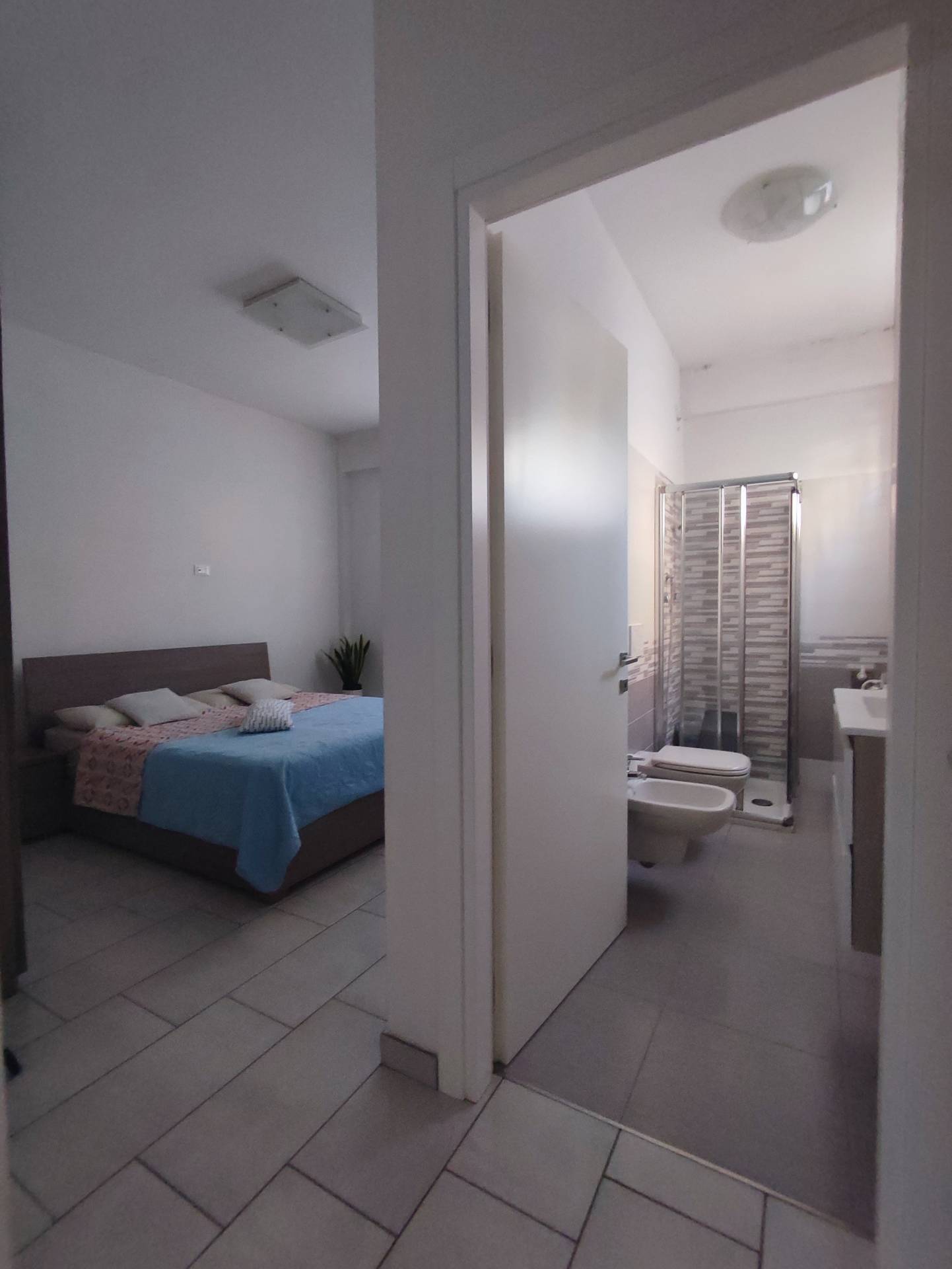 Un disimpegno con ripostiglio accompagna all'ampia camera matrimoniale ed al bagno con doccia finestrato.