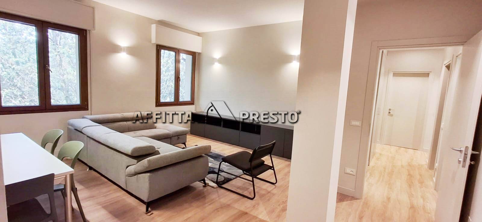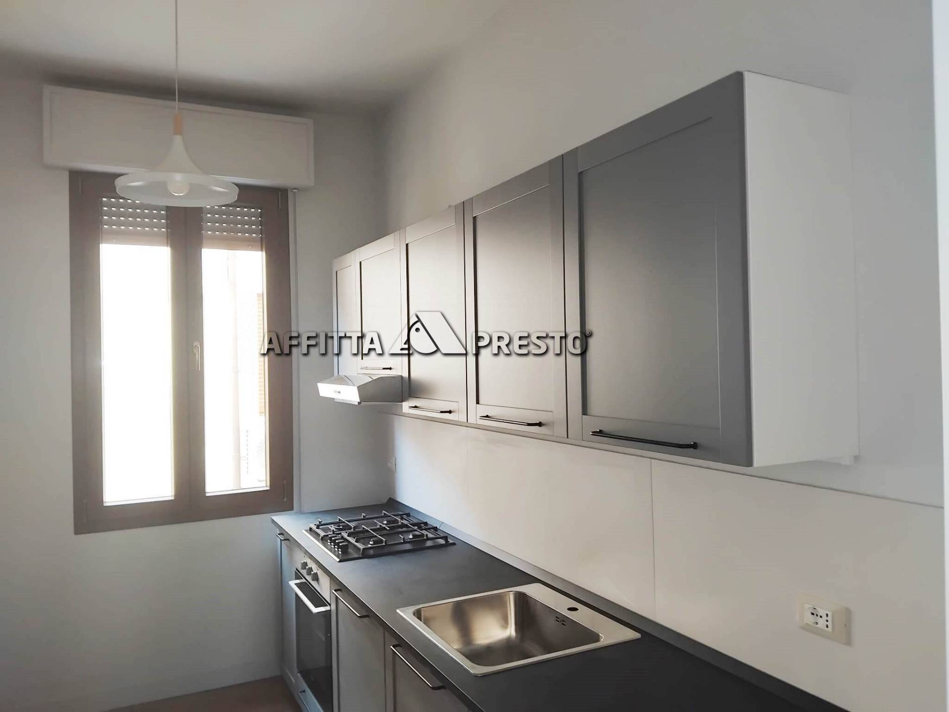 Appartamento completamente ristrutturato in affitto a Ravenna, zona Stazione, composto da soggiorno, cucina abitabile, 2 camere con bagno privato, 2 camere con un bagno in condivisione e garage al piano seminterrato.