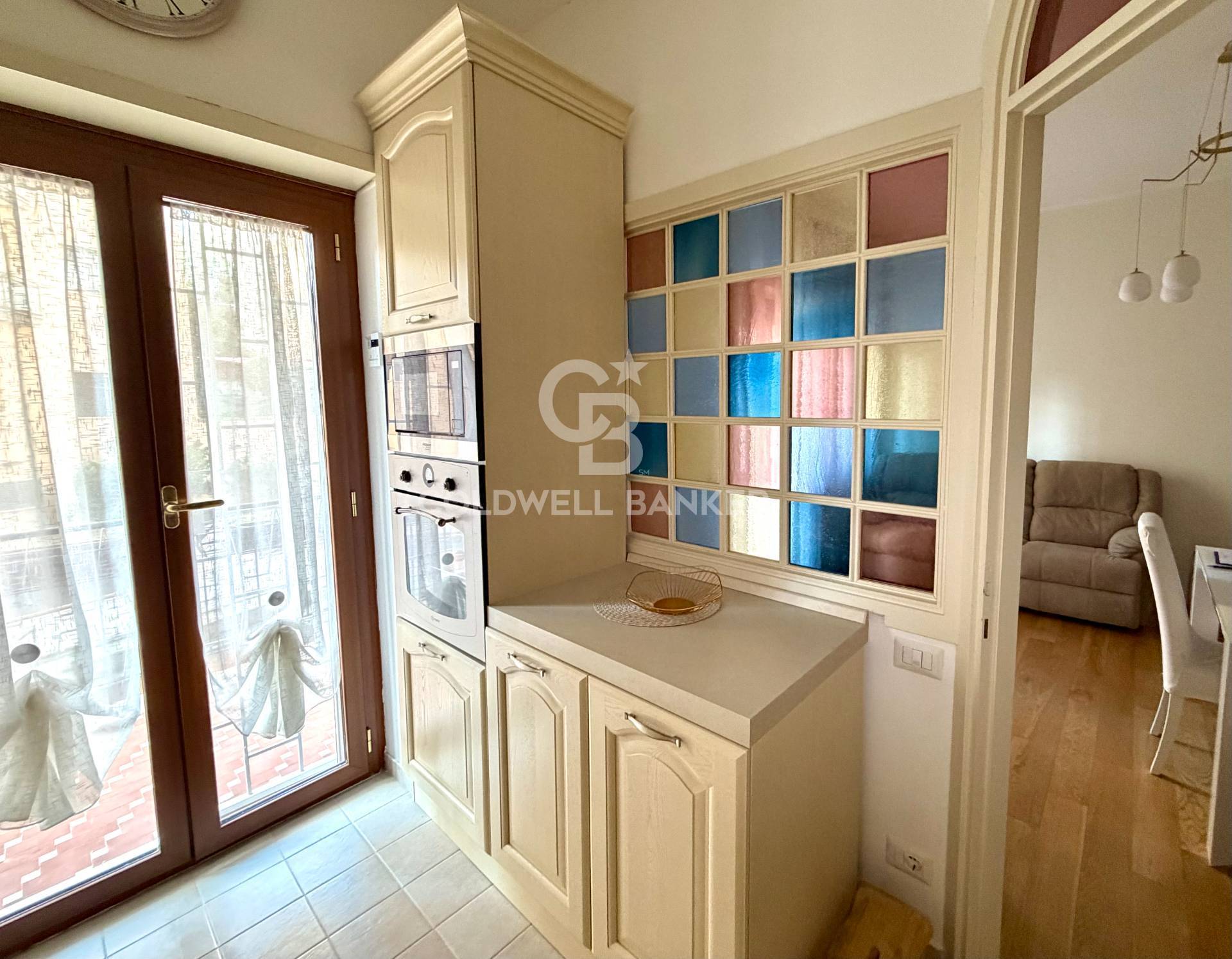 Limmobile composto da: Soggiorno luminoso con accesso al balcone Cucina separata con secondo accesso al balcone Camera matrimoniale Bagno con finestra Cantina di pertinenza Dotazioni e comfort: Porta blindata, parquet, zanzariere, tapparelle elettriche, grate di sicurezza, riscaldamento centralizzato con contabilizzatori, aria condizionata, caldaia per acqua calda sanitaria, lavatrice e forno a microonde.